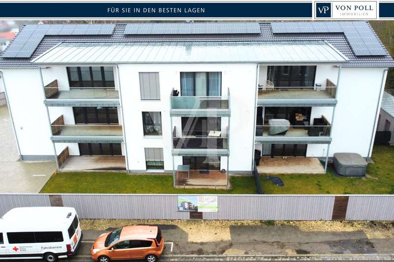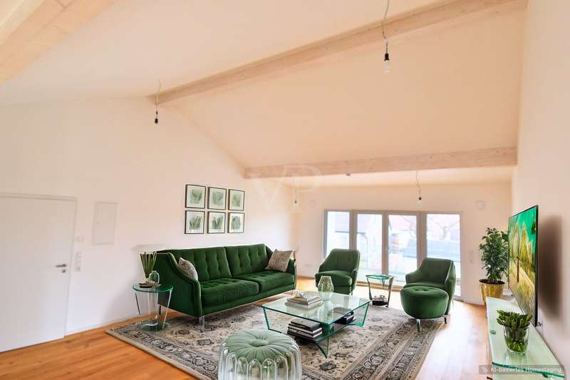 This exclusive top-floor apartment with approx. 77.72 m² and 2.5 rooms is located in a modern 3-storey KfW 40+ timber house and combines first-class living comfort with future-oriented sustainability. The building was constructed using innovative timber construction methods, which enable both outstanding energy efficiency and a particularly environmentally friendly construction method. The use of high-quality materials reduces energy consumption to a minimum, which noticeably lowers operating costs and protects the environment. This energy-efficient apartment is currently let and generates an annual rental income of EUR 9360 basic rent. Thanks to the generous window areas, which allow plenty of daylight into the rooms, a bright, friendly atmosphere is created throughout the apartment. In combination with the efficient underfloor heating, the open-plan living area ensures a pleasant indoor climate at any time of year. The modern plastic windows are excellently insulated and thus contribute significantly to the energy efficiency of the apartment. A particular highlight is the tastefully designed bathroom with a level-access shower, which offers maximum comfort and is particularly suitable for senior citizens or people with limited mobility. Barrier-free access to the apartment is ensured by an elevator, which makes it easy to reach all floors of the building. Another advantage of this apartment is the spacious balcony, which offers an inviting amount of space for relaxing hours outdoors - ideal for enjoying the peace and quiet in sunny weather or simply taking some time out. The electrically operated roller shutters in all rooms offer additional comfort and ensure greater security. At the touch of a button, you can adjust the amount of light and thermal insulation to suit your individual needs. The solid wood ceilings, which are made of natural materials, ensure a particularly high quality of living. The natural wood not only creates a warm and cozy atmosphere, but also actively contributes to regulating the indoor climate. Another advantage is the shared use of a photovoltaic system, whose self-generated electricity is used directly by the residents, thus significantly reducing energy costs. The apartment also has a parking space and a practical bicycle box that offers secure storage space for bicycles. The building meets the current KfW-40+ standards, which not only ensures low heating costs, but also contributes to a positive ecological balance. Tax advantage: Buyers also benefit from a special depreciation allowance of 5%, which provides attractive tax relief and makes the investment even more lucrative. The location is characterized by excellent connections to public transport, shopping facilities and other infrastructural amenities, which makes the apartment particularly attractive for commuters and city dwellers. Conclusion: This apartment not only offers a high quality of life, but also long-term benefits such as low operating costs and a stable investment. It is the ideal choice for anyone who values both comfort and sustainability - a perfect opportunity for both owner-occupiers and investors.