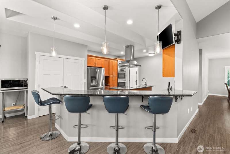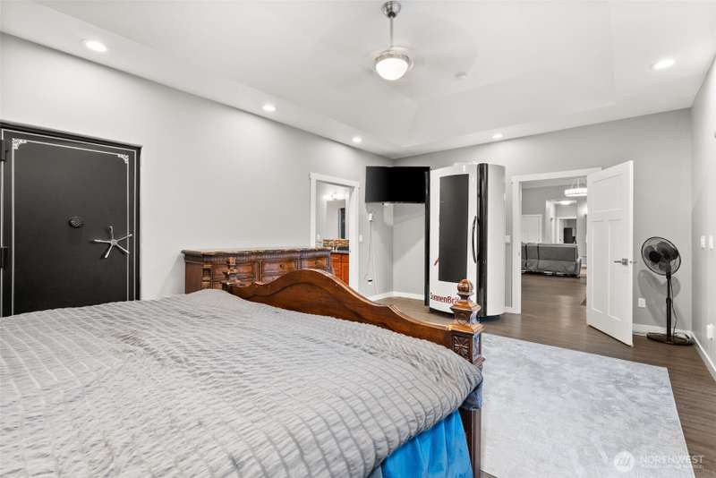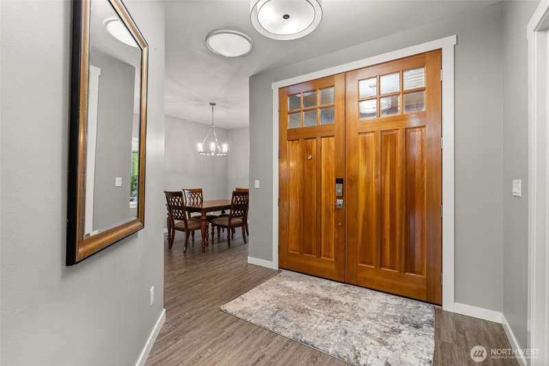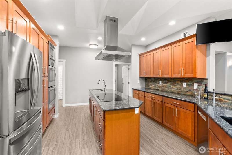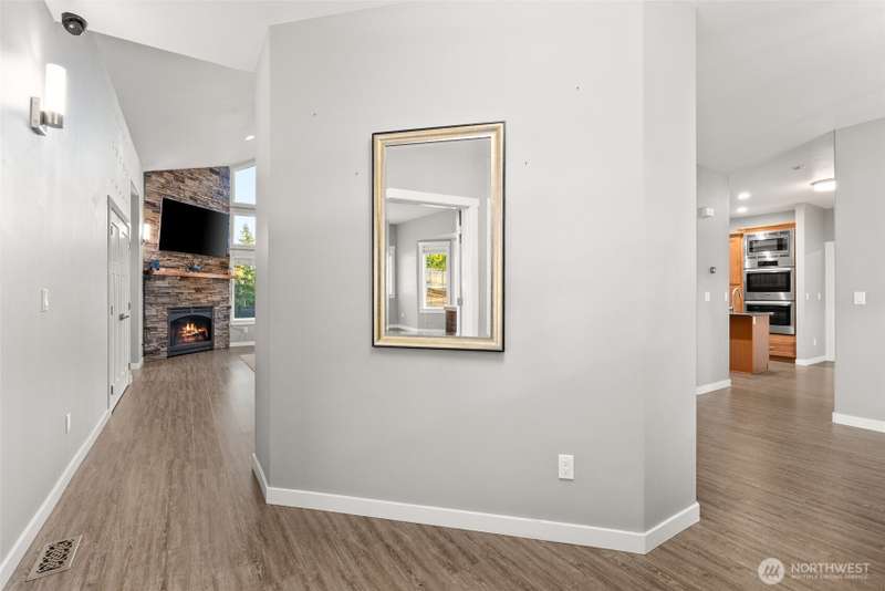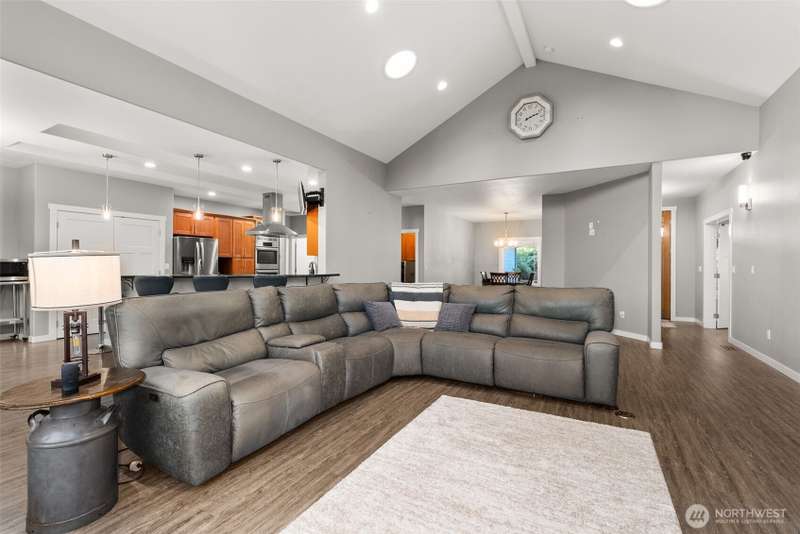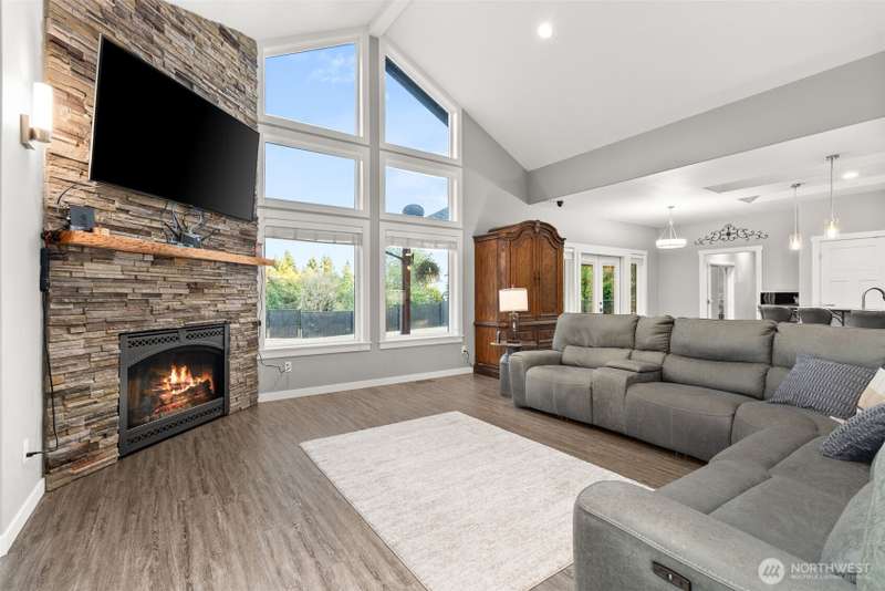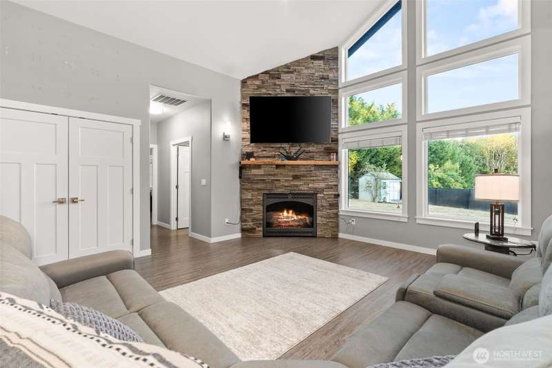 Experience comfort, space and security in this stunning 3,048 SF 3-bedrooms, plus a bonus room for home office/den (CAT-6 cabling) etc.. The home has vaulted ceilings, plenty of natural light, cozy gas fireplace, elegant LVT flooring throughout the home. The exquisite kitchen is complimented with granite counter tops, beautiful cherry wood cabinets and double ovens. The Primary bedroom has its own full en-suite bath, and it also features a remarkable walk-in 106.5 SF ventilated concrete vault for valuables or anything you want securely protected. The 1,051 SF attached 2-car garage includes a designated bay for indoor RV parking. This Gorgeous, low maintenance home is situated on 1.13 acres & offers both privacy and beautiful surroundings.