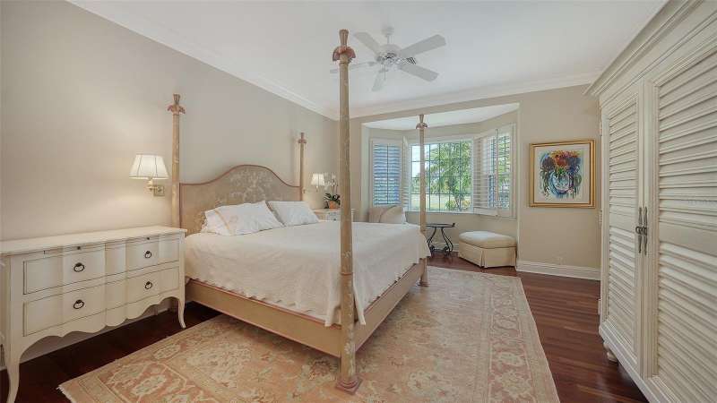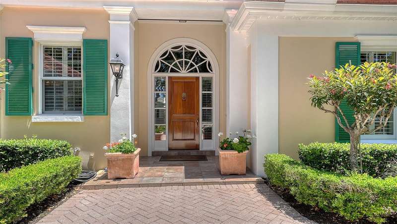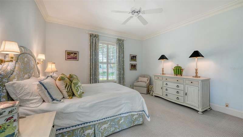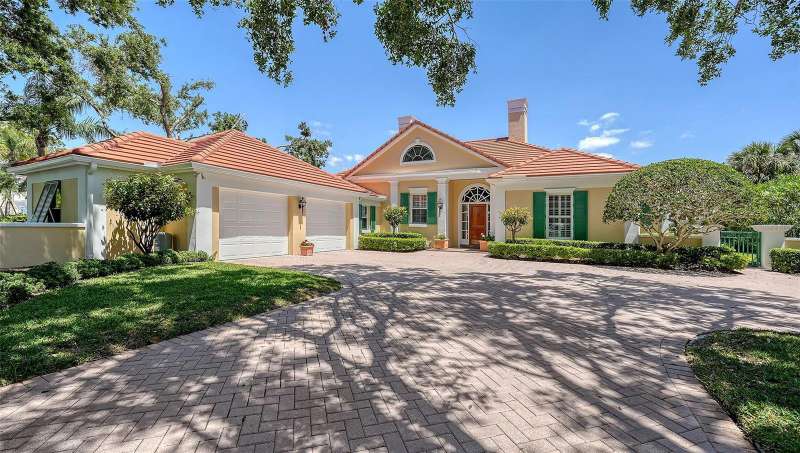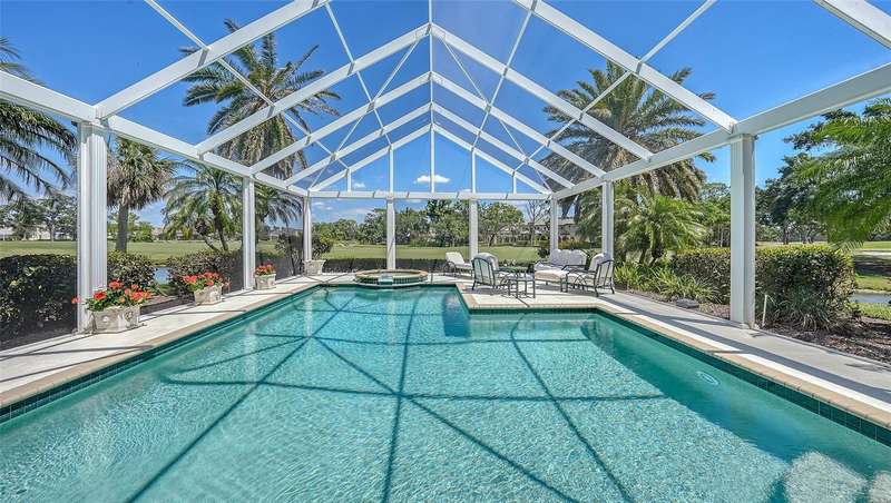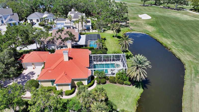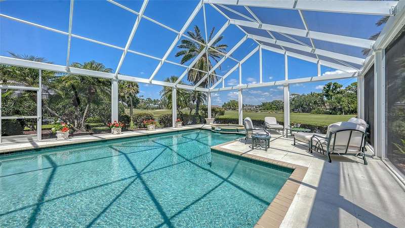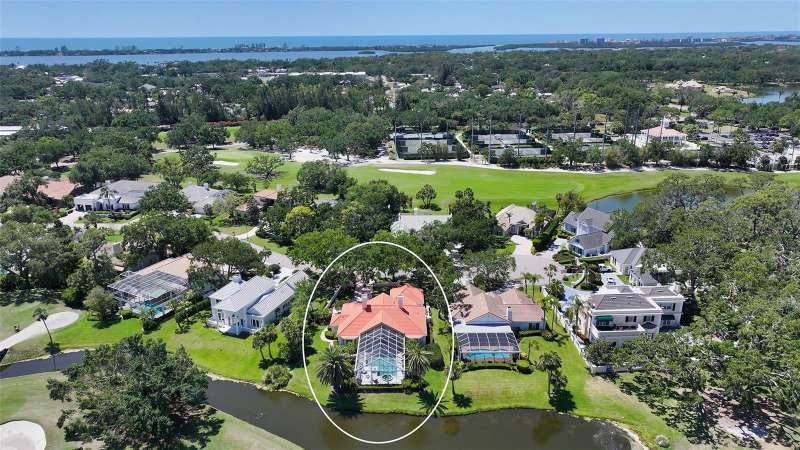 Experience the unparalleled charm and convenience of this golf course home in The Oaks Club, the country club community designed by noted Sarasota architect Bo MacEwen. 228 Saint James Park is an original Bo MacEwen design, is located on the leafy and quiet Saint James Park cul-de-sac, and directly overlooks the opening hole of the Heron golf course. This single-floor three-bedroom, two-and-a-half bath will captivate you from the moment you step inside with its open floor plan, high, coffered ceilings with extensive crown moldings, and generous French doors providing wonderful lighting, beautiful views to the lanai, swimming pool, spa, and the Heron golf course itself. 228 provides mahogany flooring in most areas, and a completely redesigned and updated kitchen with quartz countertops, Sub-Zero refrigerator, wine refrigerator, cooktop, microwave, two beverage-cooling drawers, center island, custom cabinetry, and walk-in pantry. The great room is perfect for entertaining and flows seamlessly onto the lanai that overlooks Heron #1. The split floor plan has ensuite sleeping and bath areas on each side of 228: the master suite on the north side of the home features a completely remodeled spa-like bath and soaking tub, separate glassed-in shower, stylish lighting, and a generous, custom walk-in closet. On the south side of 228 is the ensuite guest area with the spacious second bedroom and fully renovated guest bath. The third bedroom is on this south side of the home as well, and is currently being used as the residents’ office, which enjoys pleasant, direct views of Heron #1 also and direct access to the lanai and pool. Numerous details associated with this home a two-car garage with epoxy floor, storage areas, and refrigerator/freezer, French doors, plantation shutters, newer roof (2020), plantation shutters, hurricane shades, walled-in motor court, and new bay windows by Pella. Saint James Park is the residential area closest to the athletic facilities of The Oaks Club, so SJP residents can easily walk or bike to the tennis courts, pickleball courts, Well-Fit Center, or golf pro shop. Residents enjoy both casual and fine dining, as well as a social atmosphere that encourages all to stay engaged in all that The Oaks Club offers. For those electing golf memberships, the ability to play the two courses here is immediate….no waiting period! And The Oaks Club has been designated a Platinum Club of America and an Emerald Club, signifying its standing among the finest country clubs in Florida and the nation. Schedule a showing today!