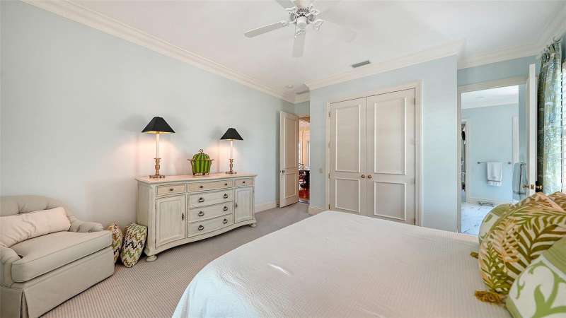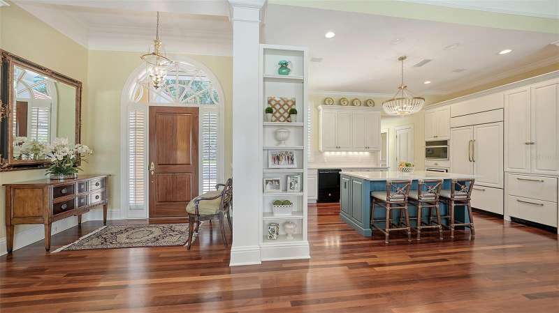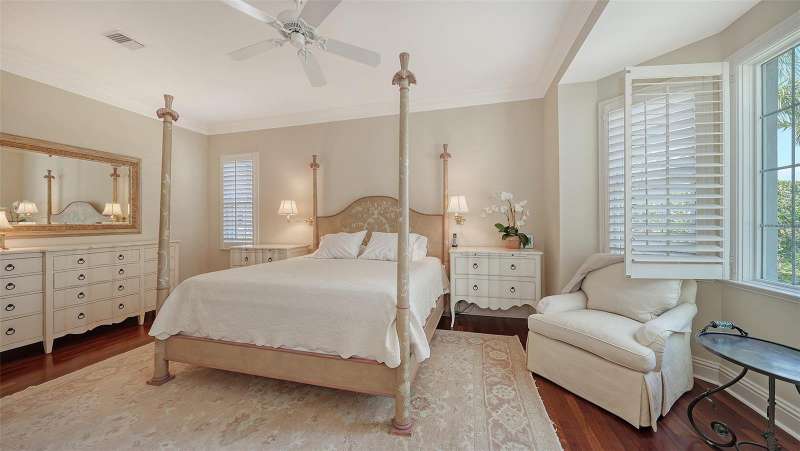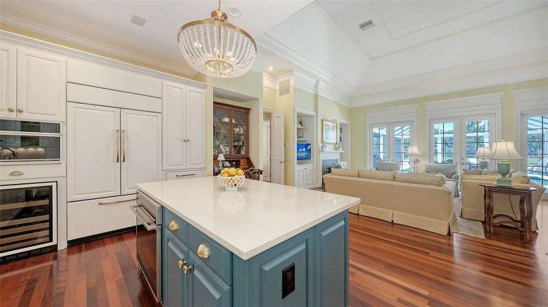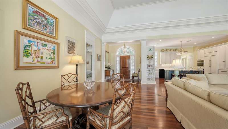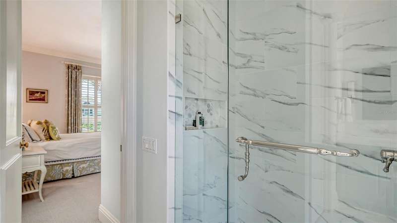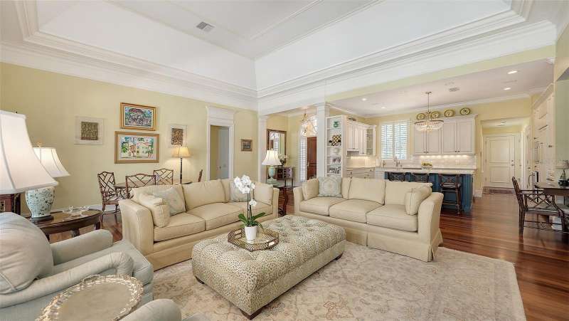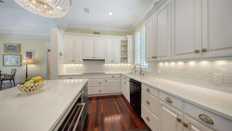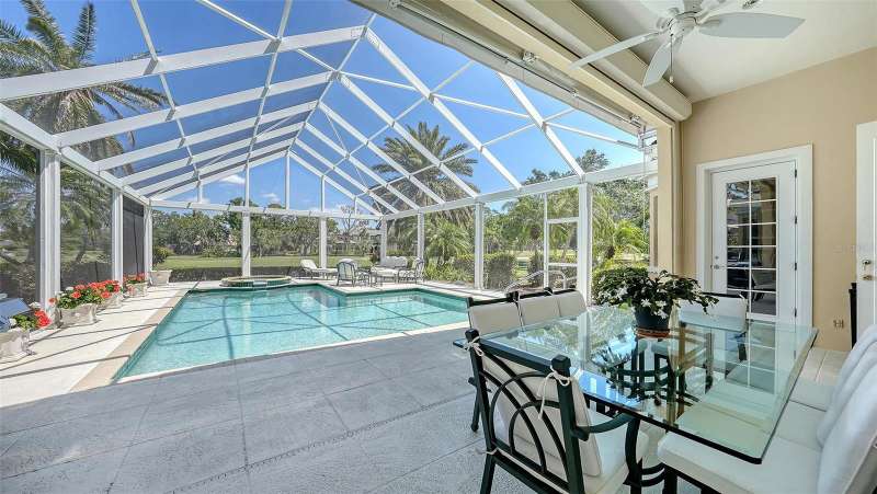 Experience the unparalleled charm and convenience of this golf course home in The Oaks Club, the country club community designed by noted Sarasota architect Bo MacEwen. 228 Saint James Park is an original Bo MacEwen design, is located on the leafy and quiet Saint James Park cul-de-sac, and directly overlooks the opening hole of the Heron golf course. This single-floor three-bedroom, two-and-a-half bath will captivate you from the moment you step inside with its open floor plan, high, coffered ceilings with extensive crown moldings, and generous French doors providing wonderful lighting, beautiful views to the lanai, swimming pool, spa, and the Heron golf course itself. 228 provides mahogany flooring in most areas, and a completely redesigned and updated kitchen with quartz countertops, Sub-Zero refrigerator, wine refrigerator, cooktop, microwave, two beverage-cooling drawers, center island, custom cabinetry, and walk-in pantry. The great room is perfect for entertaining and flows seamlessly onto the lanai that overlooks Heron #1. The split floor plan has ensuite sleeping and bath areas on each side of 228: the master suite on the north side of the home features a completely remodeled spa-like bath and soaking tub, separate glassed-in shower, stylish lighting, and a generous, custom walk-in closet. On the south side of 228 is the ensuite guest area with the spacious second bedroom and fully renovated guest bath. The third bedroom is on this south side of the home as well, and is currently being used as the residents’ office, which enjoys pleasant, direct views of Heron #1 also and direct access to the lanai and pool. Numerous details associated with this home a two-car garage with epoxy floor, storage areas, and refrigerator/freezer, French doors, plantation shutters, newer roof (2020), plantation shutters, hurricane shades, walled-in motor court, and new bay windows by Pella. Saint James Park is the residential area closest to the athletic facilities of The Oaks Club, so SJP residents can easily walk or bike to the tennis courts, pickleball courts, Well-Fit Center, or golf pro shop. Residents enjoy both casual and fine dining, as well as a social atmosphere that encourages all to stay engaged in all that The Oaks Club offers. For those electing golf memberships, the ability to play the two courses here is immediate….no waiting period! And The Oaks Club has been designated a Platinum Club of America and an Emerald Club, signifying its standing among the finest country clubs in Florida and the nation. Schedule a showing today!
