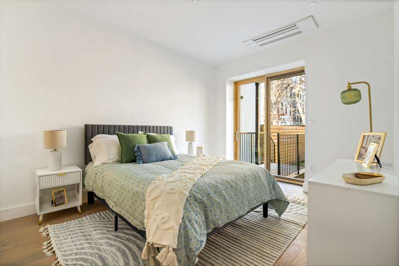 Designed for both everyday living and entertaining, the open-concept layout features a gourmet kitchen equipped with a premium Bosch appliance package, including a gas stove. Custom cabinetry with push-to-open and soft-close features seamlessly complements the pristine white quartz countertops and wide-plank, 6-inch white oak floors that flow throughout the home.