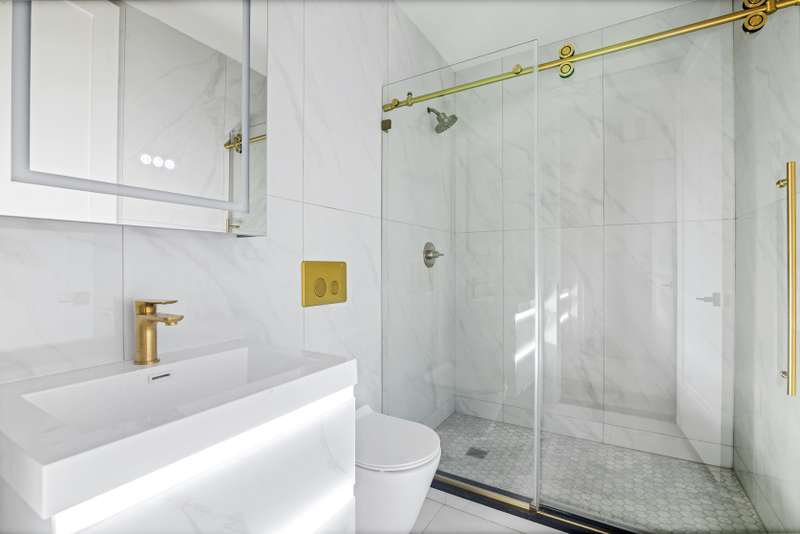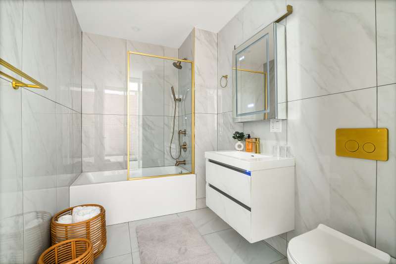 Retreat to the spa-inspired bathrooms, where marble finishes and heated floors create a serene escape. The luxurious en-suite bathroom offers dual sinks, a spacious stand-up shower, and a freestanding soaking tub for the ultimate in relaxation.