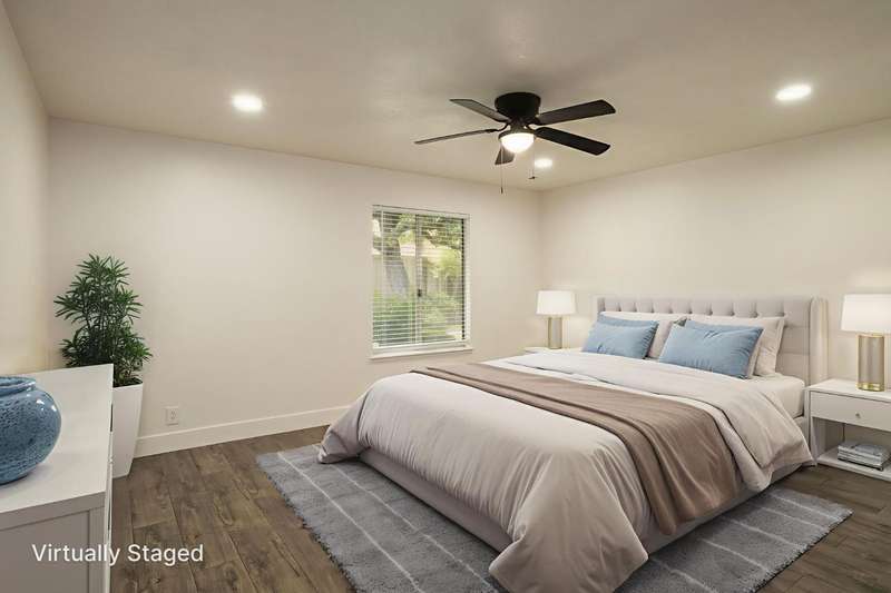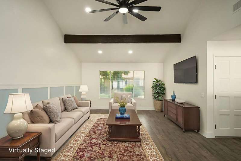 Turnkey Elegance with Rare Assumable FHA Loan at 2.75% interest rate!Welcome to this beautifully upgraded 2 bed, 2 bath PUD in Piccadilly Village near Shaw and Van Ness. With 1,297 sq ft of thoughtfully designed living space, this condo offers modern comfort, timeless style. Step inside to discover real wood-look ceramic tile throughout, vaulted ceilings in the living and dining areas, and recessed lighting that adds warmth and sophistication. The kitchen and bathrooms feature new countertops, sinks, and stunning tiled walk-in showers--no tubs. Enjoy the open-concept eat-in kitchen with butcher block seating, perfect for casual meals or morning coffee. Both bedrooms boast walk-in closets and ceiling fans, while the living room features an accent wall with wainscoting for added charm.Don't miss this rare opportunity to own a move-in-ready gem with premium upgrades.