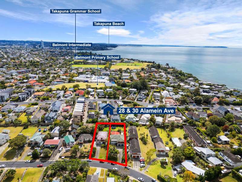 RC approved for 11 stand-along houses! Presenting a rare opportunity to acquire a substantial landholding at 28 and 30 Alamein Avenue, Belmont, Auckland. These two freehold properties, totaling approximately 1,680m² are zoned Residential - Terrace Housing and Apartment Building Zone, offering immense potential for developers and investors. Key Features: • Location: Situated in the sought-after suburb of Belmont, known for its proximity to Auckland's central business district and local amenities. • Accessibility: Easy access to public transport, local shops, schools, and recreational facilities. • Schools: Belmont School, Belmont Intermediate, and Takapuna Grammar School are within close reach, providing quality education options. • Parks and Recreation: The area offers various parks and recreational facilities, enhancing the appeal for families and residents. • Shopping: Local shops and eateries are conveniently located, ensuring daily conveniences are met. • Triple rentals: three properties are on these 2 sections with current rental of $2030 per week. For more details or to arrange a viewing, please contact us today! Seize this exceptional opportunity to invest in Belmont's thriving residential market. With its prime location, substantial landholding, and development potential, 28 and 30 Alamein Avenue are poised to become a landmark residential project in Auckland's North Shore.