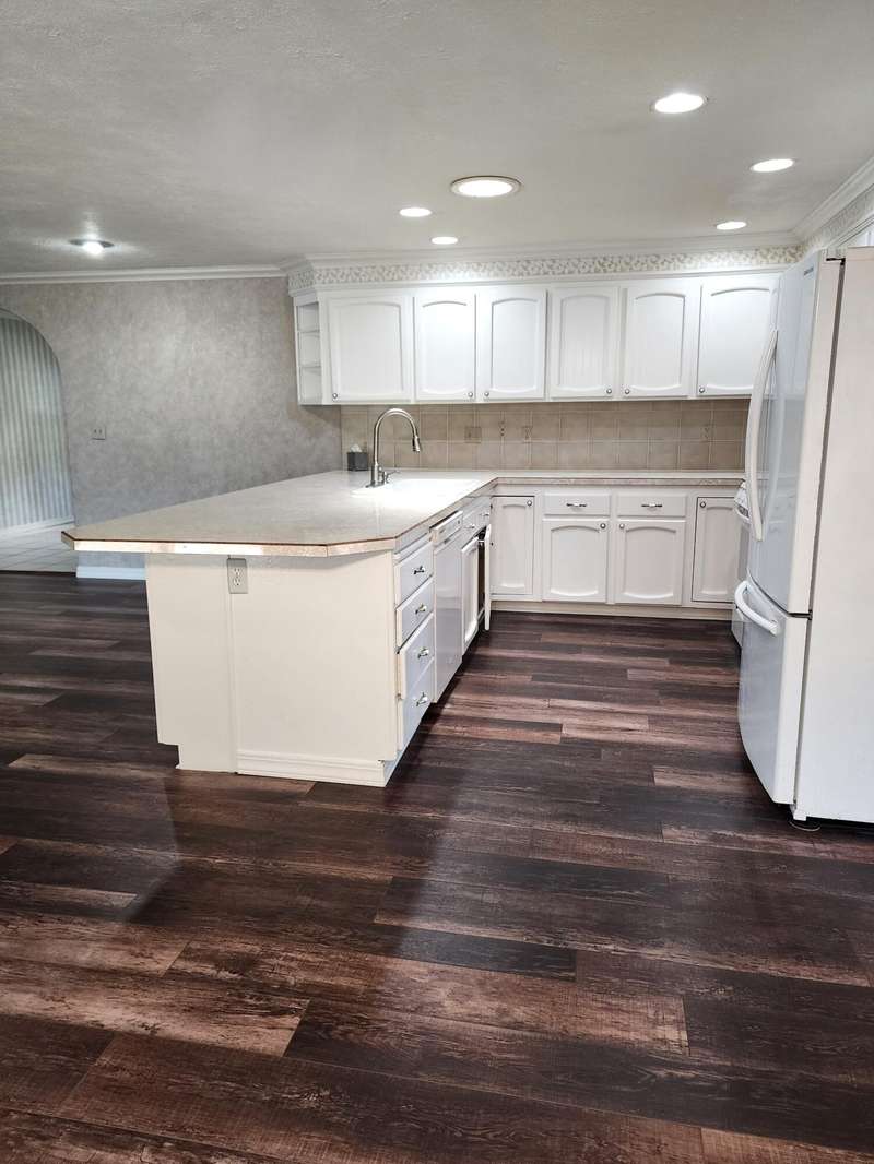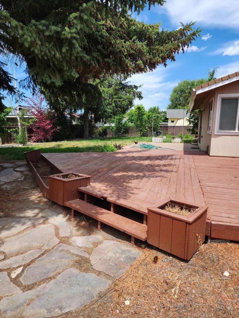Attention VA Buyers - Low-interest VA Assumable Loan possibility! Lovely Covered Front Porch, & Tiled Entry to the Main Living areas. This 2036sf Spacious Home has an Open Floor Plan, with the Kitchen opening to both the Dining area, and Family Room. Newer Vinyl Plank Flooring. The Kitchen has ample Cabinetry, and a large Breakfast Bar providing both Storage & Seating. Both the Family & Utility rooms have Sliding Doors opening to the Backyard with both large Patio and Deck. Gas Fireplaces and Built-in Cabinets are in both Living and Family rooms, and the home is equipped with a Central Vac system, Surround Sound in the Family Room, Vinyl Windows, Gas Heat, and Air Conditioning. Bedroom #3 has a built-in Desk, and the Primary Bathroom has a step-in Shower. The Garage features a Workbench, Sink, Storage in the ceiling, and a new Water Heater. Large Lot with Gated RV Parking option!