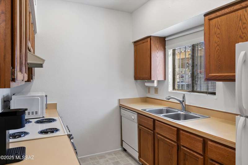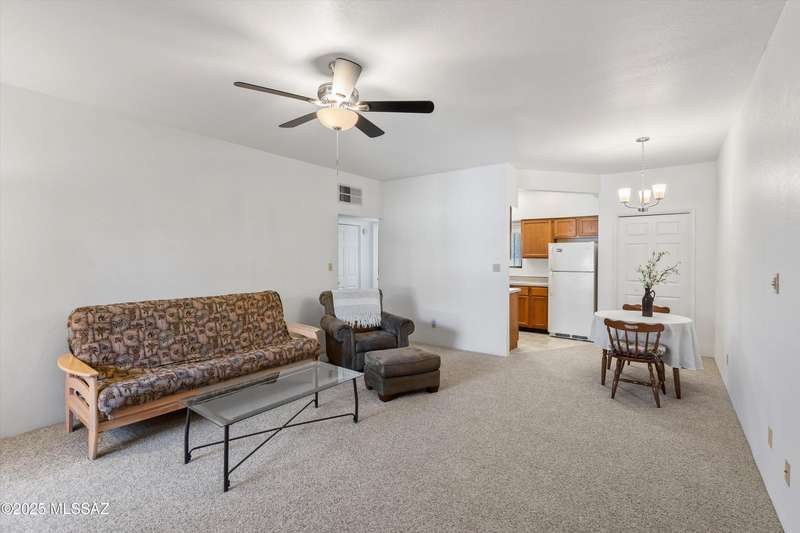 Move-in ready first-floor condo in the desirable Sunrise Springs complex, nestled in the foothills! Features include brand new carpet, fresh paint throughout, and modern new light fixtures. Enjoy a private patio with a convenient storage closet and designated covered parking spot. Surrounded by lush, mature landscaping and offering fantastic community amenities, including a sparkling pool and clubhouse. Ideally located near some of Tucson's best restaurants, grocery stores, hiking trails, biking paths, and world-class resorts.