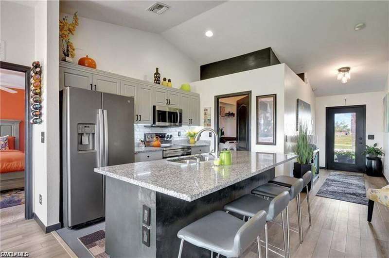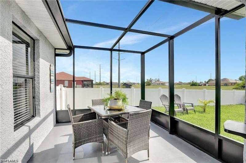 Exquisite, Picture-Perfect Estate in a Prime Location with Transferable VA Loan 3.2%!!! an Exceptional Low Interest Rate! Freshly painted interior! Step into this stunning residence, where sophistication and comfort blend seamlessly. This magnificent home, featuring 3 spacious bedrooms plus a den and 2 lavishly appointed bathrooms, offers the perfect balance of elegance and functionality. The thoughtfully designed split bedroom floorplan, coupled with a Jack & Jill bathroom, ensures both privacy and convenience, ideal for family living or hosting guests. Meticulously maintained and move-in ready, this home exudes charm and style at every turn. The meticulously landscaped grounds, combined with a private fenced-in backyard, create an oasis that feels more like a luxury resort. Step outside and enjoy the Florida sunshine on your expansive screened lanai, with a generous backyard offering endless possibilities-including the space to add your very own pool. Perfectly situated in a coveted area, this estate is just moments away from exquisite dining, upscale shopping, pristine beaches, vibrant parks, boat ramps, scenic trails, and key locations such as Pine Island, Matlacha, and the Burnt Store Seven Islands Project. The home has been thoughtfully updated with modern touches, including a 2020 Air Conditioning System, 2021 Water Heater, 2019 Water Treatment System, 2021 Pressure Tank, 2021 Exterior Paint, and a brand-new Roof installed in 2023. This extraordinary residence is ready for you to claim as your own-an unparalleled opportunity to live in a home that combines beauty, luxury, and convenience. Don't miss out on this once-in-a-lifetime chance to own your dream home! Veteran Friendly.