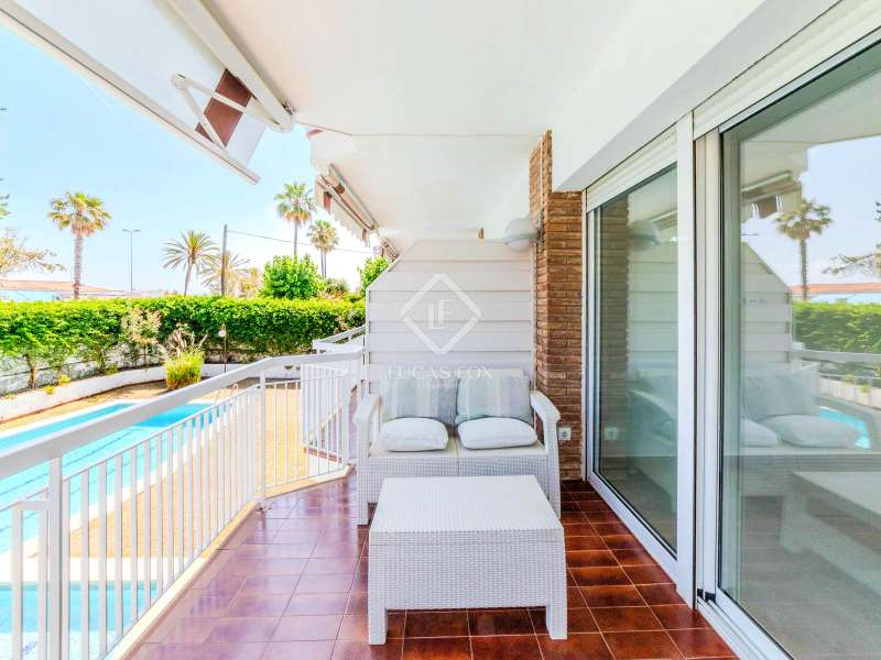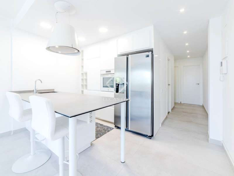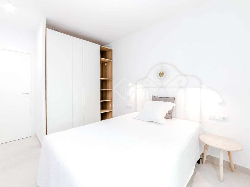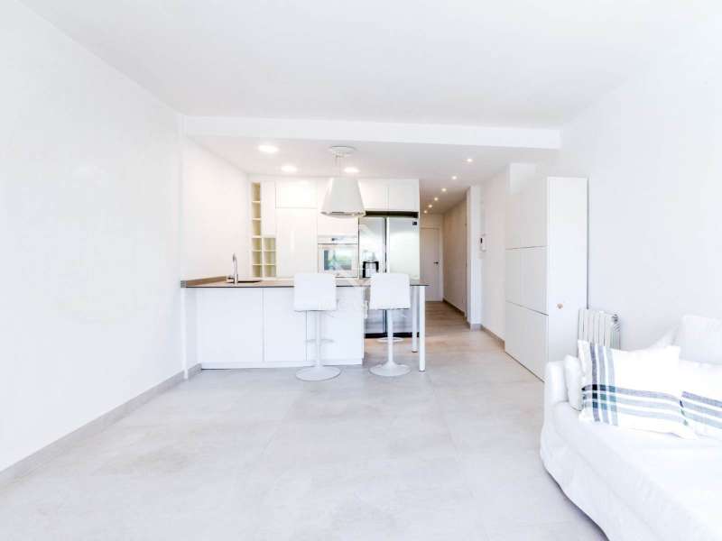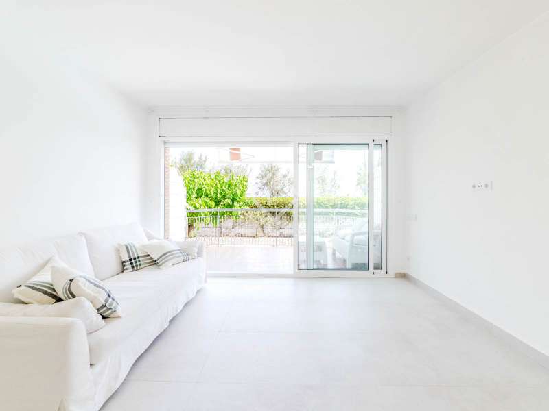 This fully renovated apartment is located on the first floor of a building with a lift and is being sold with a parking space and storage room. It enjoys a great location in Sitges, just one minute from the beach. From this area of the promenade you can walk to the beach, restaurants, pharmacies and other services to enjoy, which offers a coastal town as special as it is Sitges. As soon as we enter, we have the hall that leads to one side, to the living room with a separate kitchen, equipped with everything one may need. From the living room we see the terrace overlooking the sea and, on the other side, there are two modern bathrooms and two double bedrooms with heating and natural light; the rooms include custom-made wardrobes and double beds. The entire apartment is decorated in white and ecru shades, which gives it a modern and sophisticated air. The community also has a 24-hour concierge, swimming pool and garden area.
