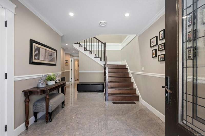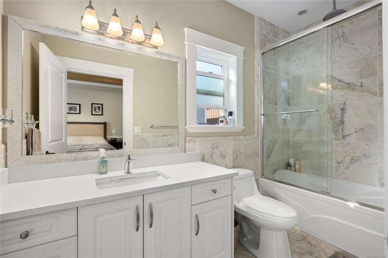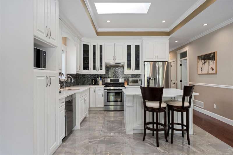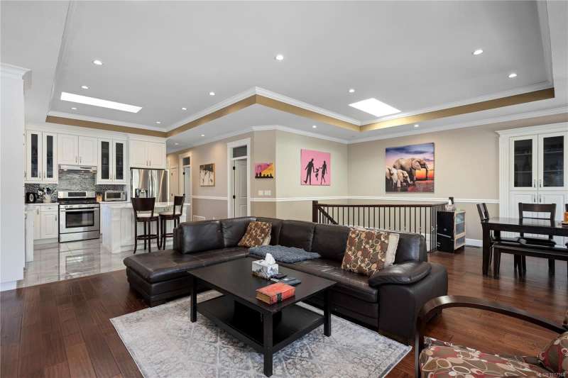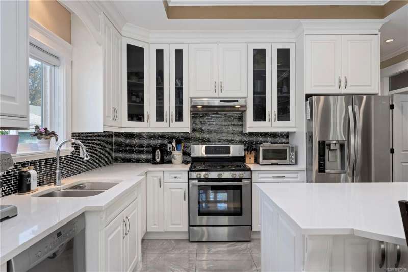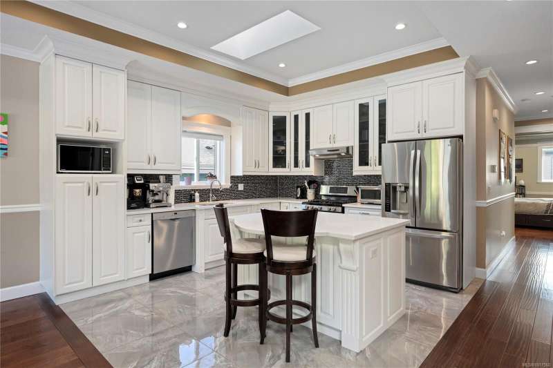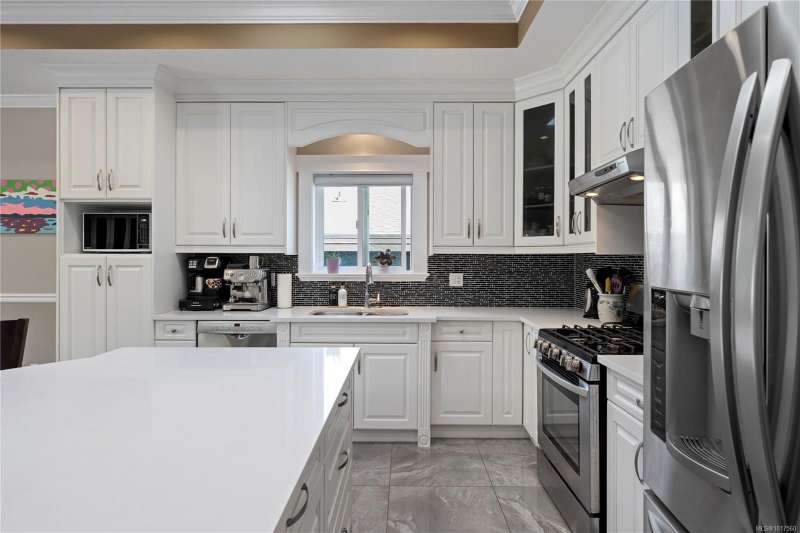 Terrific value at a great price! Wonderful 5 BD, 4 BA family home, incl. a 1 BD legal suite in the heart of Hammond Bay. You'll be impressed w/ the finishings & design of this custom home featuring a tiled entry, hardwood staircase & floors up, wood mouldings/trim & a bright chef's kitchen w/ quartz throughout. The main boasts a great-room w/ custom cabinetry, deco fireplace & tray ceilings, 3 BD, 2 BA incl. a large primary BD, covered rear balcony for year-round bbq'ing & back yard access. The front deck off the dining room is great for happy hour or morning coffee. Remodelled laundry room finishes the main. Lower level has a spare BD, full BA, access to garage & legal, 1 BD 1BA suite w/ it's own laundry, private covered entry - great for extended family, Airbnb or tenants. Heat Pump, fenced back yard, hot tub area, irrigation, next to Harry Wipper Park, new playground & schools close by makes this an easy choice. Conveniently located by transit, Neck Point, Pipers & amenities.