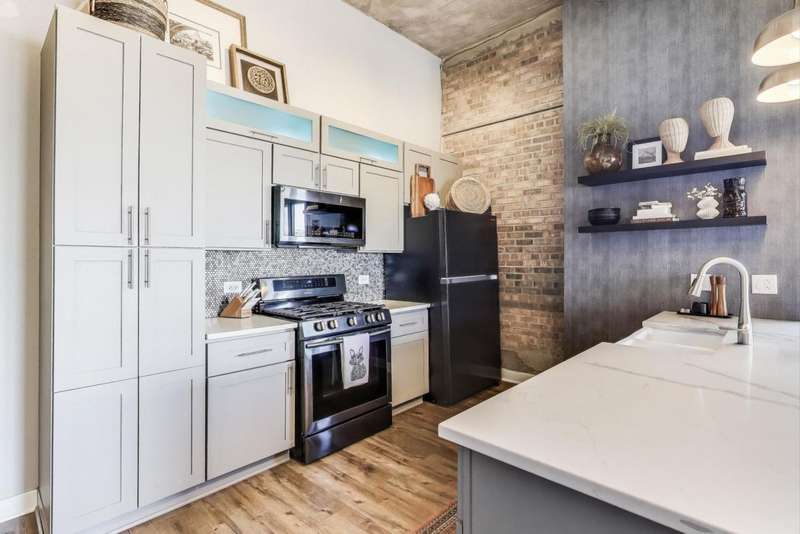Nothing to do but move in-an impeccably updated and rarely available corner unit at Chess Lofts with stunning, unobstructed northern views of the Chicago skyline and Lake Michigan. Enjoy morning coffee on your private balcony as the sun rises over the lake, and wind down with a glass of wine on the rooftop deck as the city lights sparkle. This spacious 2 bed, 2 bath home features soaring 12-foot concrete ceilings, exposed brick, and all new floors throughout, blending industrial charm with modern elegance. The open-concept layout is ideal for entertaining or relaxing in style. The newly renovated kitchen boasts custom cabinetry, premium black steel appliances, oversized quartz countertops, and sleek tile backsplashes. The primary bathroom is a spa-inspired retreat that has been completely professionally updated-no detail overlooked. High-end lighting and in-unit laundry add convenience. Two parking spots available for $30,000 each-a rare value in the booming South Loop. Just minutes from the Loop, McCormick Place, Museum Campus, Soldier Field, and Lake Michigan, with easy access to Lake Shore Drive and public transit, this home delivers comfort, style, and breathtaking views.