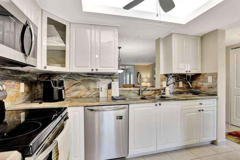 Beautifully renovated first-floor 2 bed, 2 bath condo in a quiet, well-maintained community. Features include a fully updated kitchen with Brazilian Michelangelo quartzite countertops, modern cabinetry, and newer appliances. New A/C system, accordion hurricane shutters, impact-resistant windows and sliding door provide peace of mind and natural light. Full-size washer/dryer in unit, private storage room, and plenty of guest parking. Enjoy tranquil golf course views from your living space. Conveniently located near shopping, dining, and major highways. Move-in ready! SELLER IS MOTIVATED AND OPEN TO REASONABLE OFFER.