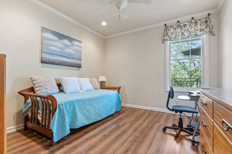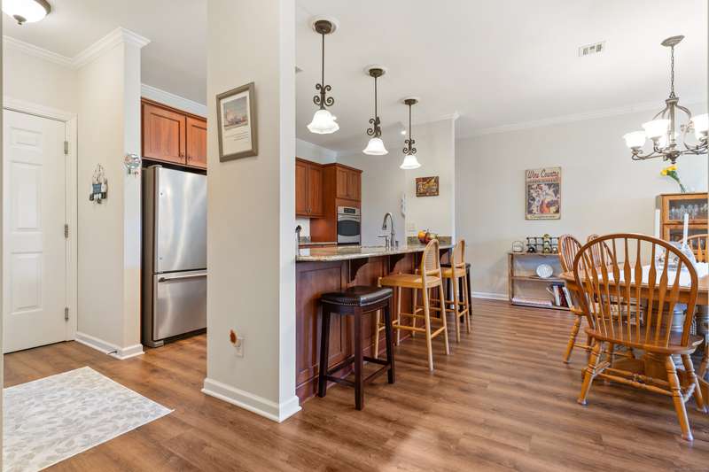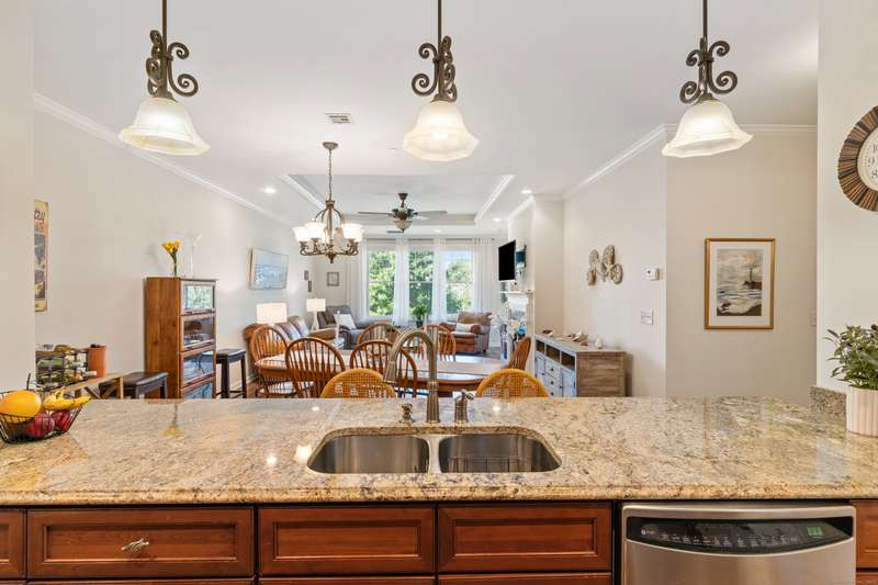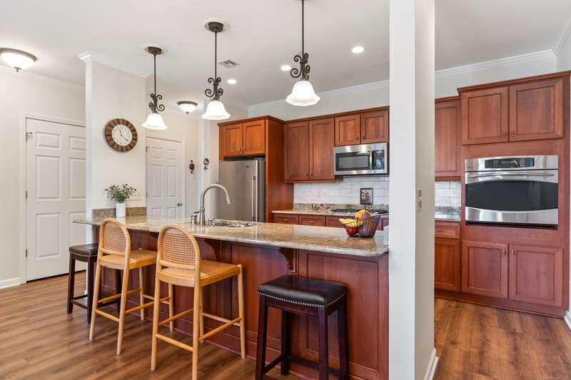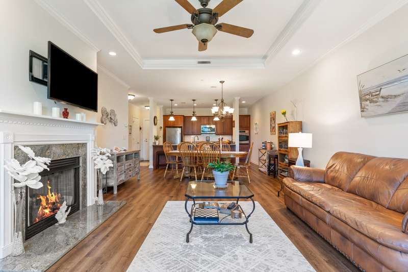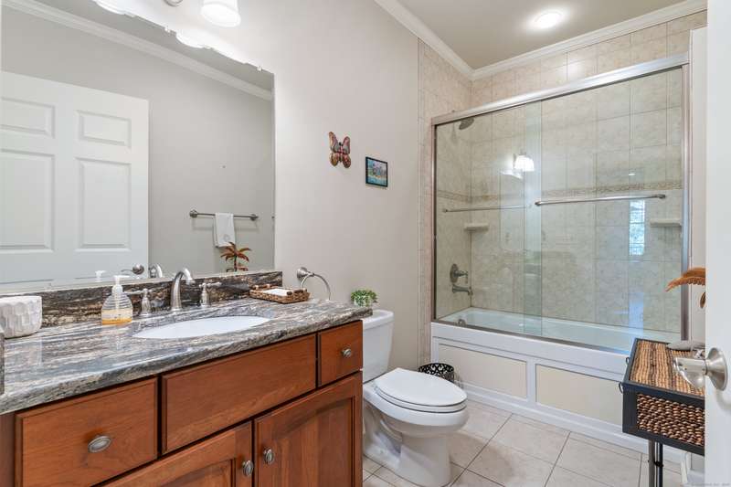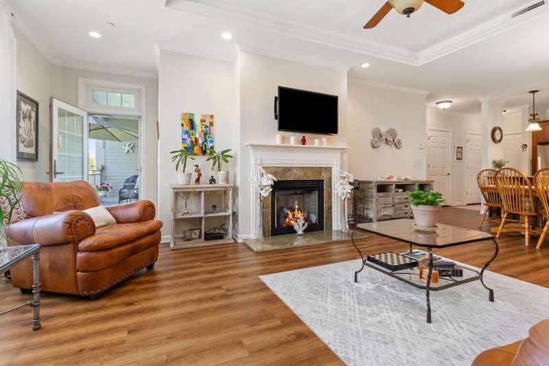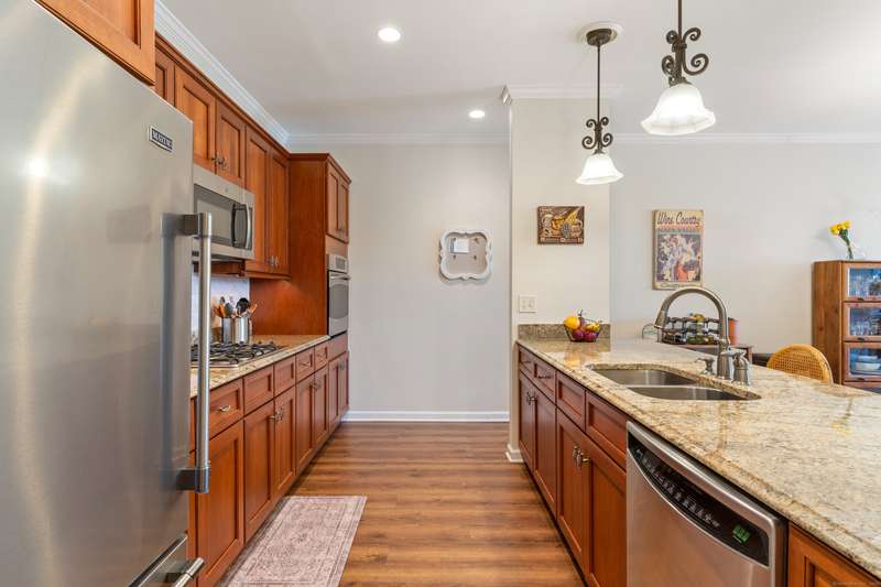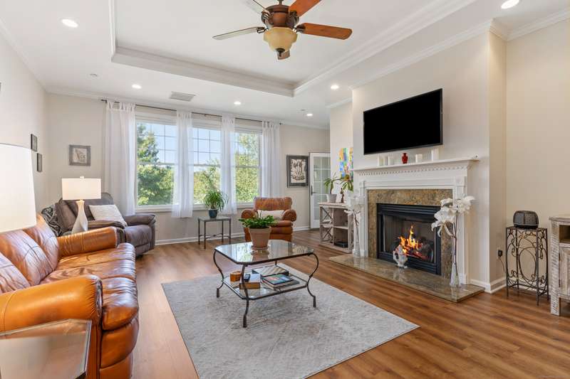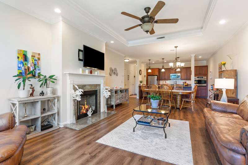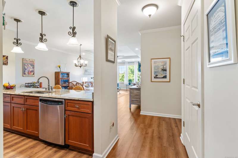 Welcome to Branford's prestigious Anchor Reef ! This luxurious Ranch-style waterfront property offers an exceptional living experience in a highly desirable setting. Inside, the open-concept living and dining areas feature a soaring 9-foot coffered ceiling and a stunning stone gas fireplace, creating a sophisticated ambiance. Relax and unwind on your private patio, perfect for enjoying your morning coffee or evening leisure. The gourmet kitchen includes granite countertops, a spacious breakfast island ideal for entertaining or casual meals, a gas cooktop, wall convection oven, dishwasher, and ample counter space for culinary creations. The primary suite is equipped with a luxurious full bathroom and a convenient laundry closet. Owners of this property enjoy access to premium amenities, including a state-of-the-art elevator, a secure garage with storage options and a beautifully maintained clubhouse with a heated swimming pool. Conveniently located, this home provides easy access to the