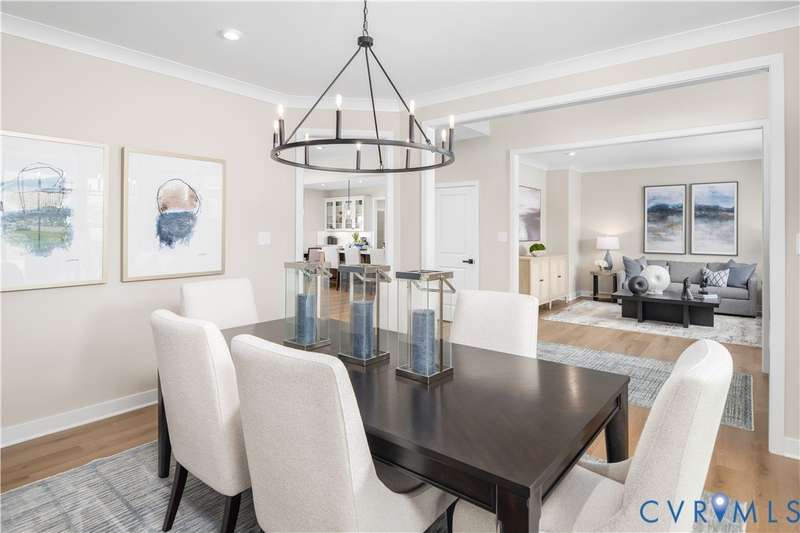 Quick move-in new construction opportunity in the highly sought-after and sold-out Meridian section of Magnolia Green! Rare chance to own a brand-new Normandy floor plan on an oversized cul-de-sac lot with no neighbors on one side. This home backs to serene wooded views and a tranquil retention pond, offering exceptional privacy rarely found in the community. Interior highlights include upgraded LVP flooring throughout most of the first floor, Timberlake cabinetry with a stylish two-tone navy island, elegant quartz countertops, and sleek black fixtures. The spacious layout features 4 bedrooms, 4 full baths, an oversized loft, a study (possible 5th bedroom), and a library. Outdoor living is enhanced with a covered front porch and composite rear deck. Located in a top-rated Chesterfield school district and ready for move-in by November/December 2025 - just in time for the holidays. Residents enjoy access to Magnolia Green's award-winning amenities including golf, pools, trails, and more.