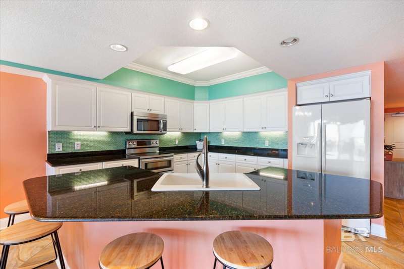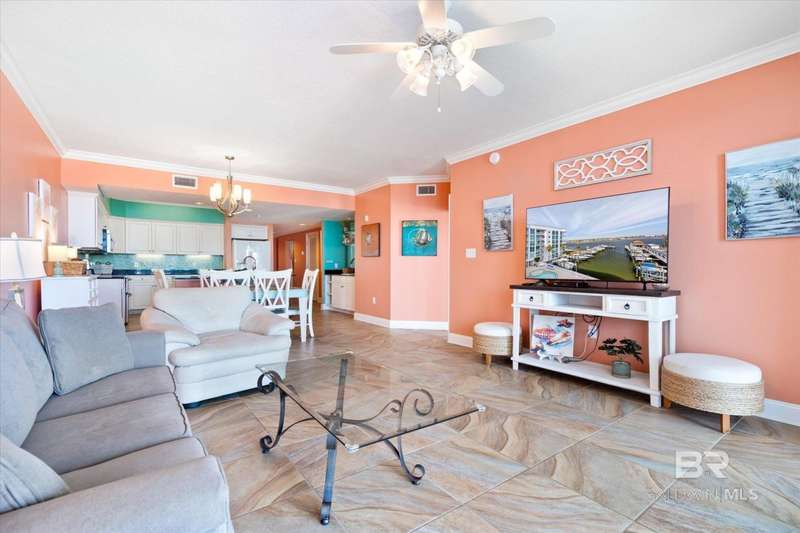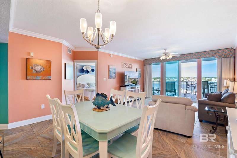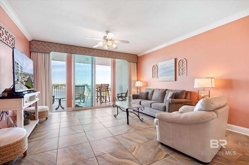 The Pass Unit 407 is a stunning condominium boasting 1,527 square feet of luxurious living space. Featuring 2 bedrooms, 2 and a half bathrooms, and an additional bunk room, this residence offers ample space for both relaxation and entertainment. Situated right on Perdido Pass in Orange Beach, the condo offers unparalleled views of the picturesque Robinson Island. Residents of this low density building can indulge in the serene beauty of boats gliding by and ospreys soaring overhead from the comfort of their balcony. Inside, tile floors span throughout the unit, lending an elegant touch to the living spaces. The kitchen is expansive with plenty of room for entertaining your guests.This condo is fully furnished and includes an assigned, deeded covered parking space.Moreover, residents of The Pass Unit 407 benefit from an array of community amenities designed to enhance their coastal lifestyle. The community boasts a charming tiki bar and fishing pier, providing the perfect setting for leisurely evenings by the water. A marina offers convenient access to boating and water activities, while both indoor and outdoor pools offer refreshing retreats year-round. A BBQ and entertaining area invite gatherings with friends and family, while a private beach provides a secluded spot for relaxation. Covered parking ensures convenience and protection for residents' vehicles, completing the picture of effortless coastal living at its finest. Current assessment has been paid in full by seller. Buyer to verify all information during due diligence.