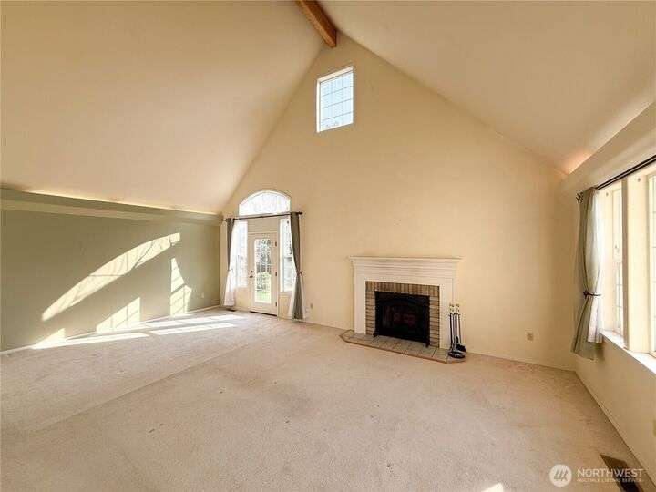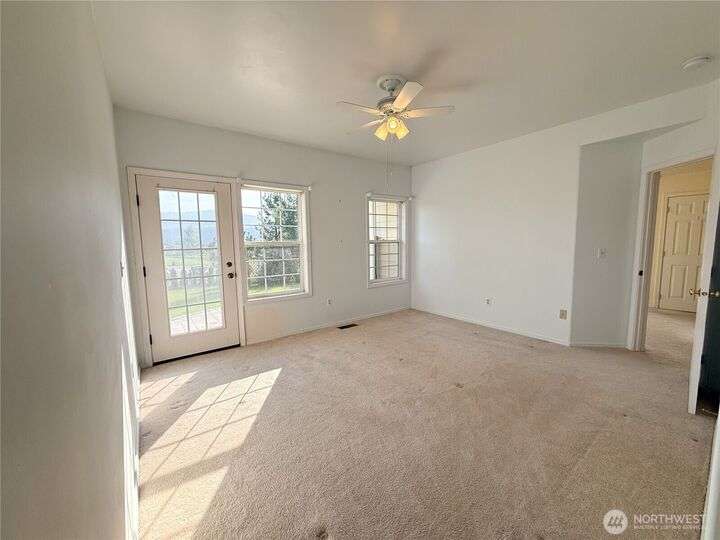 Exceptional 4-bed/2 bath home in Orchard Trails on 1.14 irrigated acres. Warm wooden beams and soaring vaulted ceilings create a welcoming atmosphere, while skylights and tall windows bathe the living room in natural light. The open floor plan flows seamlessly for entertaining—gather around the cozy wood-burning fireplace or step outside to the stone patio and private backyard. Spacious, bright kitchen with all appliances, primary suite with full bath, flexible 4th bedroom/bonus room, and separate utility. Lush lawn with irrigation sprinklers, storage shed, and double garage with paved driveway. Country feel, just minutes from Omak shopping and schools!