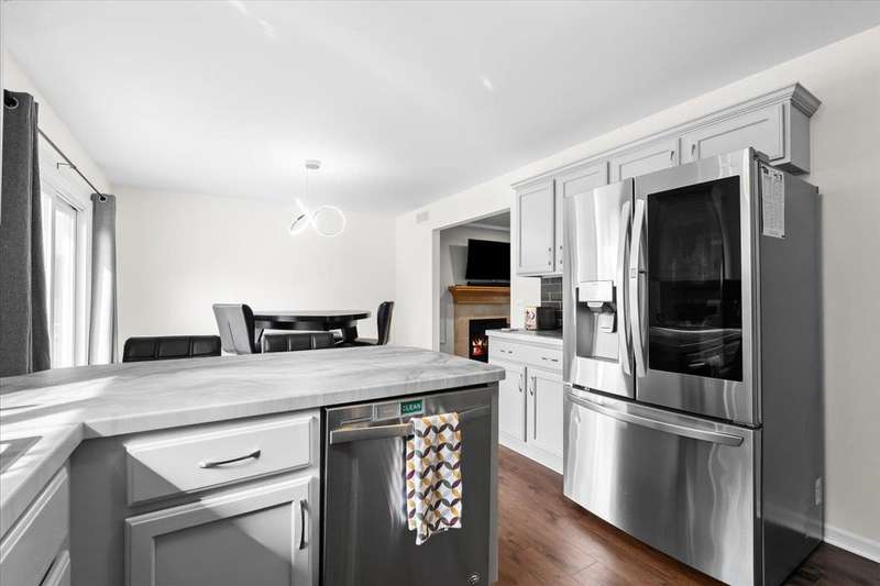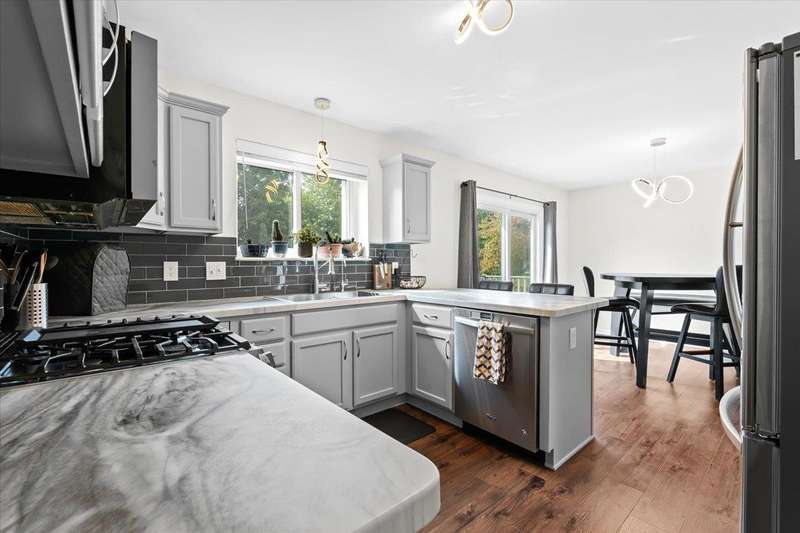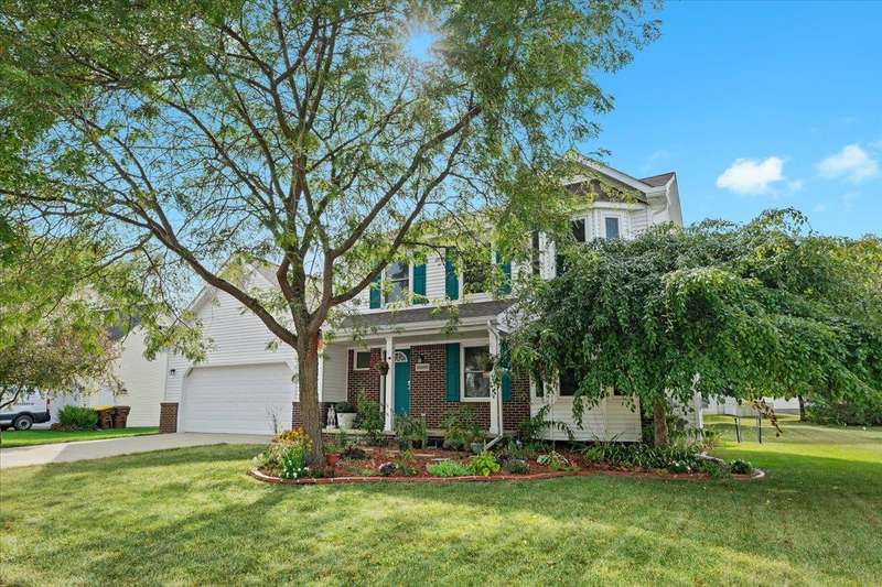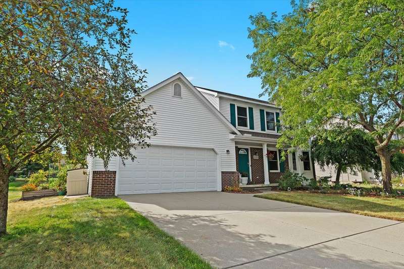 This property is ready for you to move in and start enjoying! Recent upgrades include new windows and a door wall, along with a high-efficiency furnace and AC added in August 2022. The entire first floor features fresh luxury vinyl flooring, and the kitchen has been modernized with new stainless steel appliances, both completed in August 2023. The roof, siding, gutters, and downspouts were replaced in October 2023. The garage has been drywalled and painted for a polished look. Additional features include a comprehensive water filtration system, installed in July 2019, and a newly cemented walkway from the deck to the patio completed in September 2020. The home offers a seamless flow enhanced by abundant natural light and a gas fireplace in the living area, ensuring a warm and inviting atmosphere. Generous laundry space and ample closet sizing ensure convenience. The private backyard, complete with trees, is perfect for relaxation or gatherings. This well-maintained 3 bedroom, 2.5 bath Colonial also includes a partially finished basement and modern smart features.