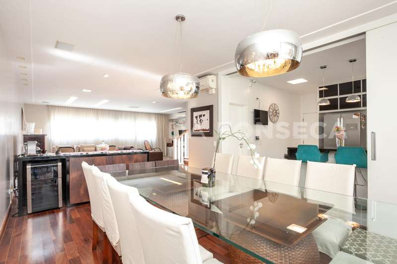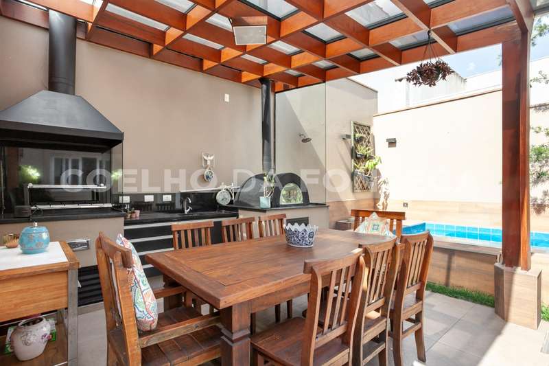 Belíssima casa, muito clara, com muita luminosidade, totalmente reformada e modernizada. No térreo, amplo living, para 3 ambientes, anexo à piscina e à área gourmet, com churrasqueira e forno de pizza.Mais cozinha americana e lavabo. No piso superior, sala de estar e 3 suítes, sendo a master, com closet e 2 banheiros -senhor e senhora. Há possibilidade de uma quarta suíte, alterando a configuração da suíte master. Na entrada, jardim e garagem para 4 veículos. Em rua muito tranquila, com segurança motorizada,