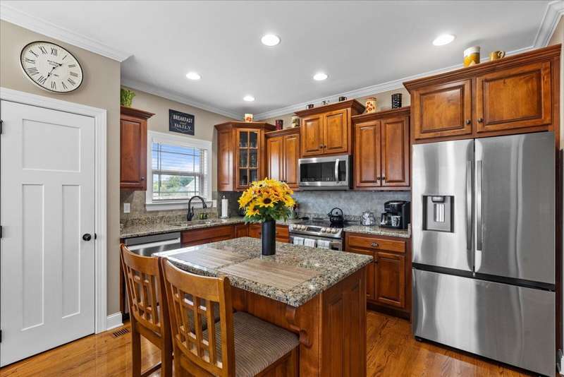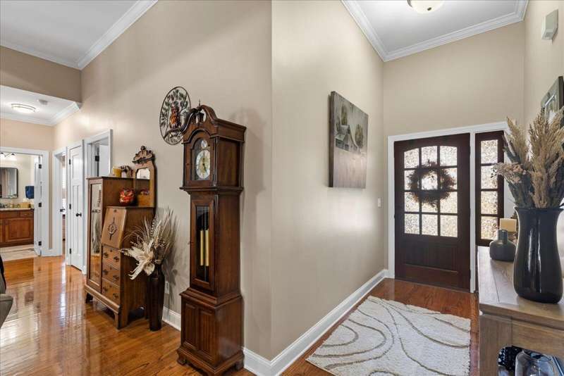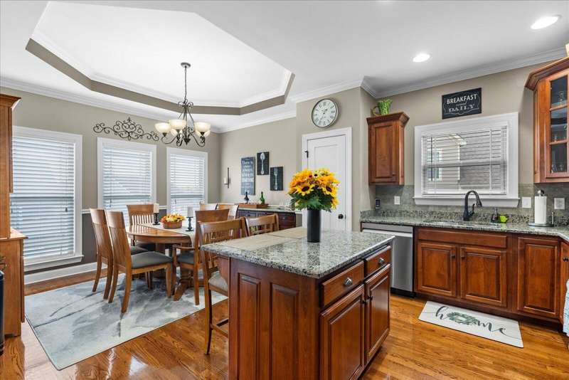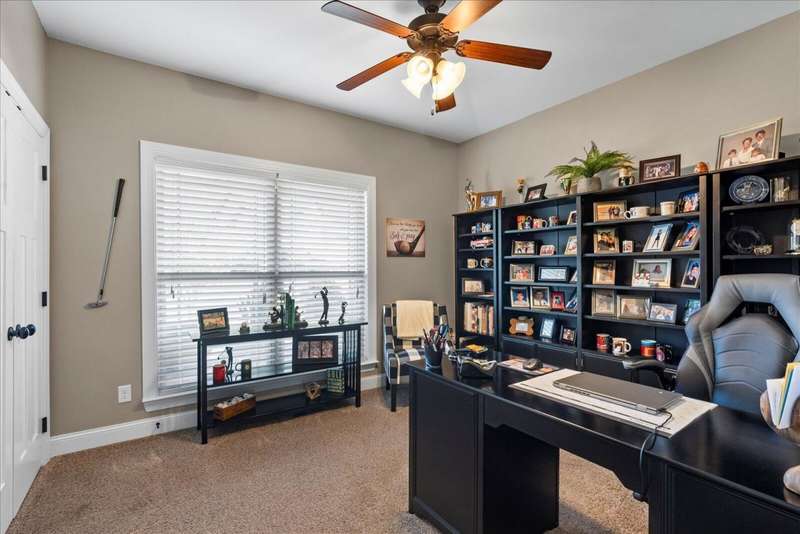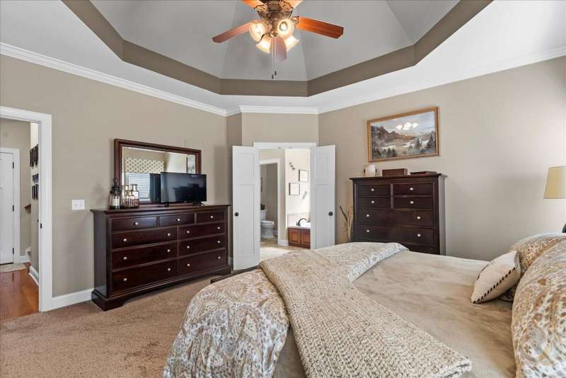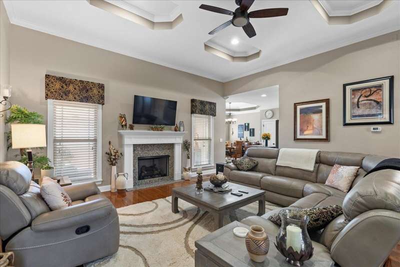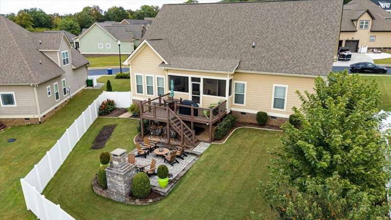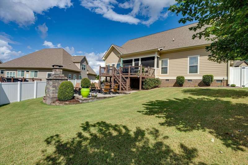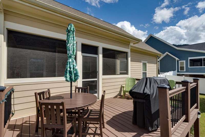 Welcome Home! This beautiful Emerson Russell built home has been meticulously maintained by it's only owners. Outside you will be impressed with every detail from the landscaping at the entrance to the outdoor fireplace in the fenced in back yard and the relaxing screened porch where you can see views of the mountains. The home boasts 2,200+- square feet of living space with 4 bedrooms, 3 of which are on the main floor & 3 bathrooms with one of those being upstairs. The kitchen features stainless appliances which all remain along with granite counters. Be sure to notice the beautiful custom buffet/bar area that the owners added in the dining area. You'll love the beautiful ceiling work found throughout the home. The spacious living area has a gas log fireplace for cold winter nights. The primary suite has a gorgeous ceiling and you'll be wowed by the upgraded closet organizers which can be found throughout the home. You have 2 guest rooms & a guest bath on the main floor. Upstairs you have a 4th bedroom or bonus room plus a 3rd full bath. The laundry room is super cute & functional as well. If you've been looking for a home in a gated community with great amenities, then look no further than this home. You'll find everything you need here!