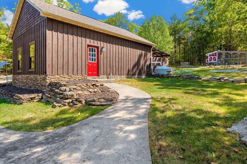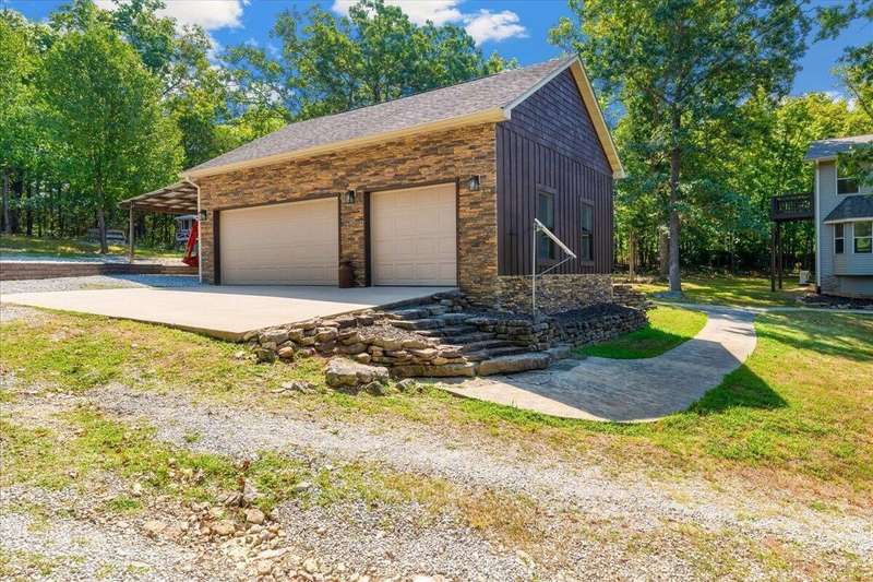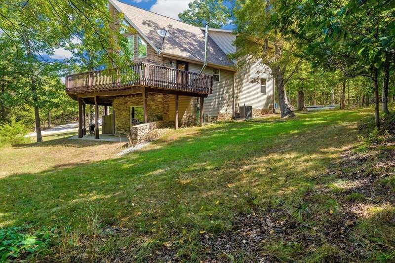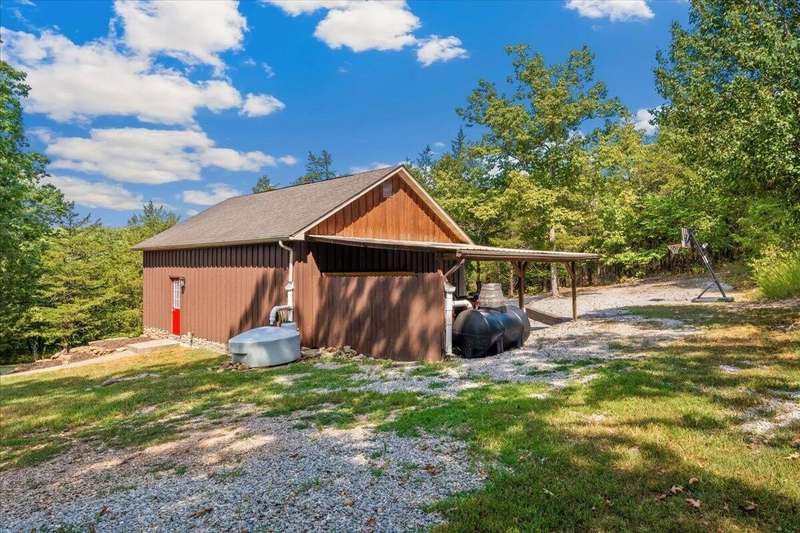 Discover the perfect blend of comfort, function, and outdoor living in this 3-bedroom, 3-bath home surrounded by the beauty of the Mark Twain National Forest. The property offers unique features for both everyday living and recreation, including a 30-amp RV hookup in the garage, 240-volt wiring, a basement plumbed for a wet bar with sump pump, and a safe that stays with the home.Recent updates in 2025 include a new hot water heater, new mini-split upstairs, loft roof replacement, and inspections on both the house and garage roofs. The foundation has been leveled with new pillars, 4 front windows replaced, and an HVAC system updated just 6 years ago. Inside, enjoy a cozy wood stove and pellet stove, tinted living room windows, and a water softener for added comfort.Outdoors is a nature-lover's retreat with a 600-gallon rain catchment system, wet-weather creek, raised garden beds, chicken coop, fire pit area, and frequent visits from deer, rabbits, and squirrels. Located near Bull Creek and Chadwick ATV Park, this home is an ideal escape for outdoor enthusiasts while still offering the comforts of modern living.