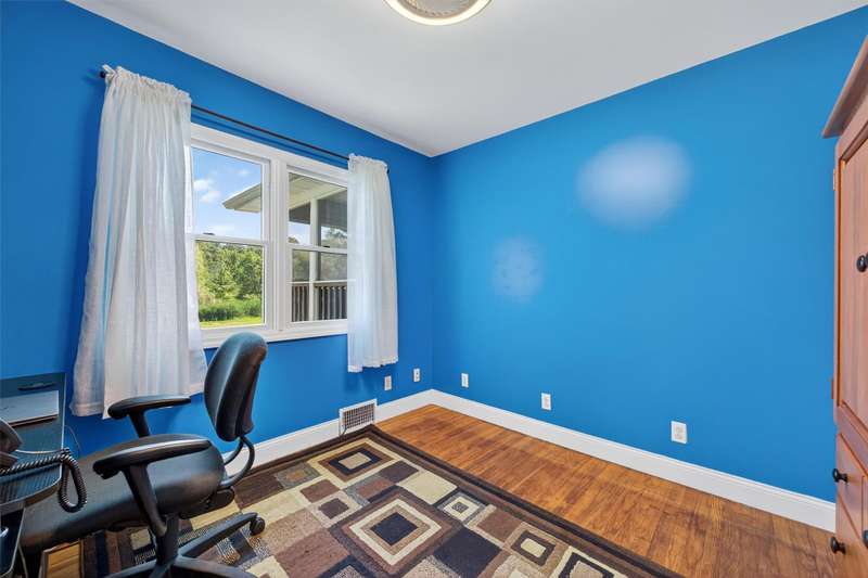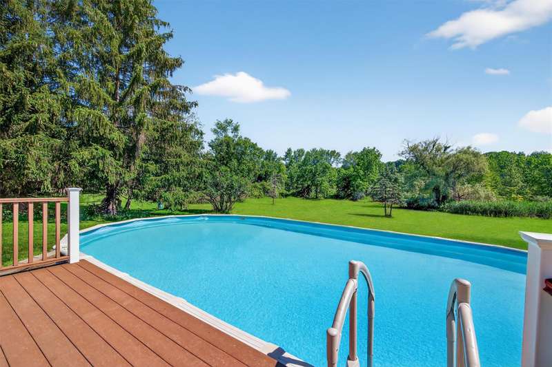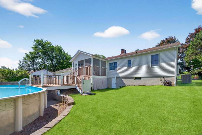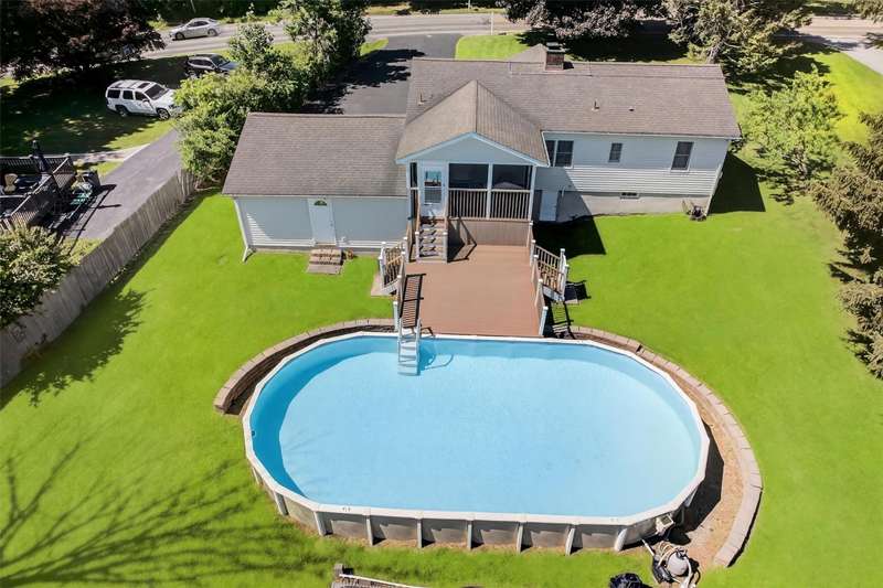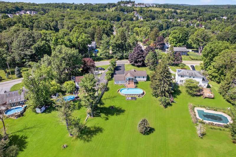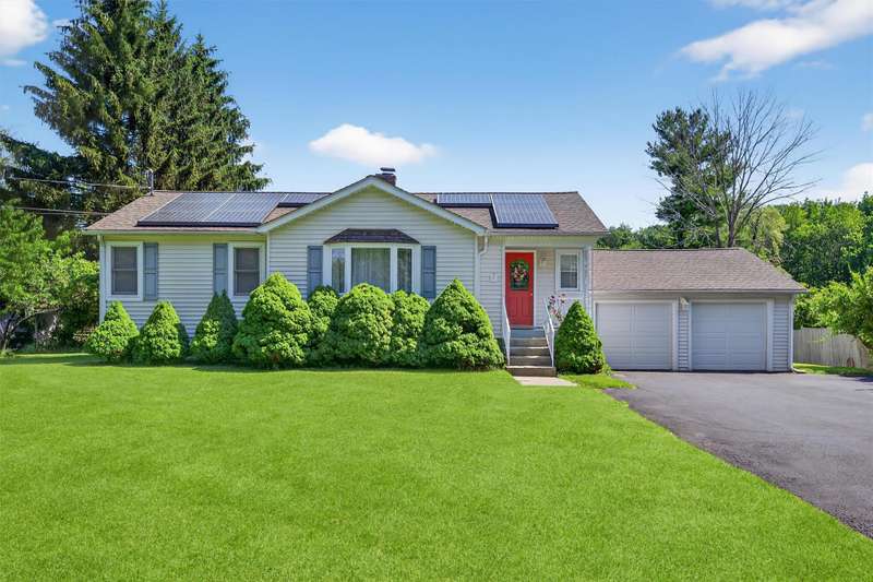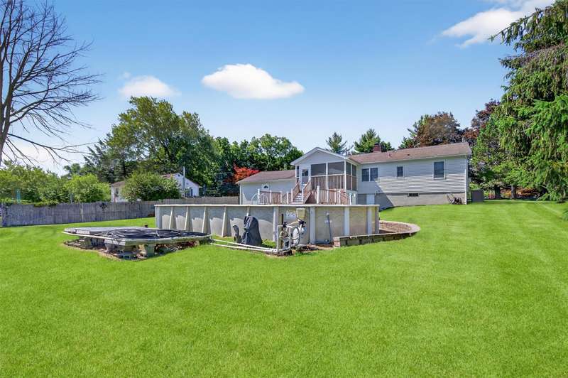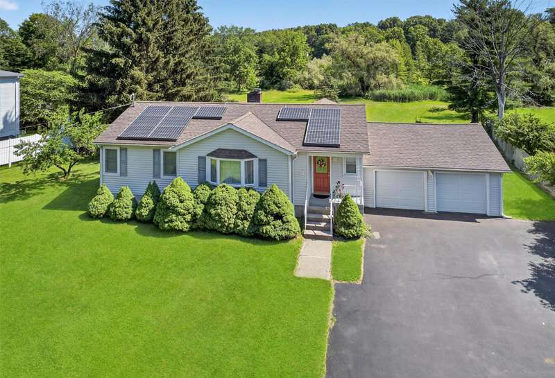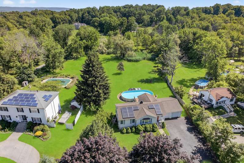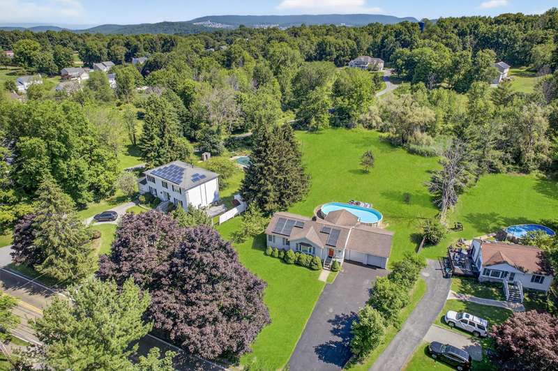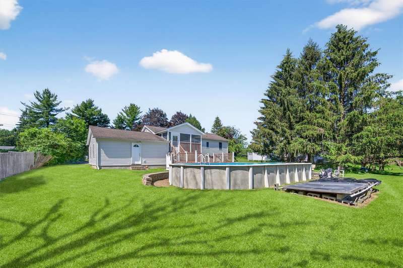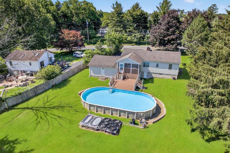 Updated Ranch with Scenic Acre+ in Monroe-Woodbury Schools This beautifully updated ranch offers comfort, efficiency, and style on over an acre of picturesque property within the sought-after Monroe-Woodbury School District. Inside, you'll find pine cabinetry, stainless steel appliances including a Bosch dishwasher, five-burner gas stove, stainless steel hood, and refrigerator along with a pantry and beautiful hardwood floors throughout. Thoughtful improvements include new insulation, updated 200-amp electric, central air and heating system (2013), a high-efficiency gas burner, and a Navien hot water heater installed in 2021. Owned solar panels and a solar-heated, huge 608 sq ft. above-ground pool with a five-year-old pump help keep energy costs down while maximizing comfort and enjoyment, it also comes with a robot vacuum. A fabulous 10x16 screened-in three-season room you will use daily, opens to a 16x17 Trex deck with Trex handrails, offering seamless indoor-outdoor living and direct access to the pool perfect for relaxing or entertaining. The living room features a wood-burning brick fireplace and custom crown molding. The entry offers a knee wall, wainscoting and space for toys, plants or just extra space. Most windows were replaced with vinyl windows, and ceiling fans remain throughout. The fiberglass front door adds both charm and durability. There are three bedrooms and a full updated bath-with outlet in the bathroom cabinet. Bedroom one, currently used as an office, features two windows overlooking the private backyard. Bedroom two offers backyard views and a large closet, while the primary bedroom includes custom molding and is located near a deep linen closet. Additional highlights include town water, a young concrete septic tank with leach fields, a 20x24 attached 2 car garage, and a water filtration system. The property extends all the way back to the pine trees, offering a peaceful and scenic setting. Conveniently located near schools, highways, and shopping, this inviting home is ready to enjoy.