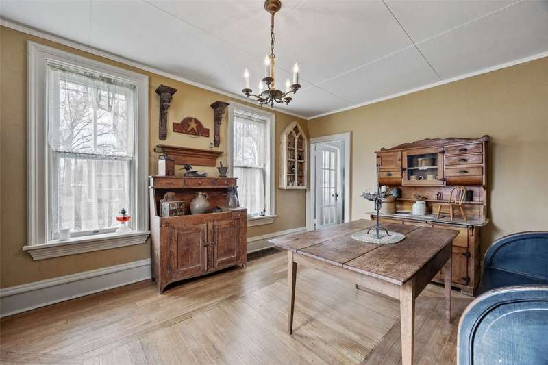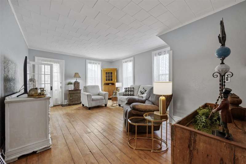 Welcome Home! This stunning two-story brick home sits on a rare half-acre lot right in town, offering both charm and space. Step inside and you’ll be greeted by beautifully refinished original hardwood floors that flow throughout the entire home. The main level features a freshly painted living room and dining room, showcasing the craftsmanship of the unique hardwood flooring. The remodeled kitchen is a chef’s dream, complete with new cabinetry, a striking copper farmhouse sink, and new appliances. Just off the kitchen, the sunroom provides the perfect spot for your morning coffee, indoor plants, or an herb garden. Upstairs, you’ll find three generously sized bedrooms and a completely renovated full bathroom, featuring a walk-in shower and modern finishes. For added convenience, the washer and dryer are also located on the upper level. This home has been lovingly maintained, with thoughtful details and updates throughout. Outside, the expansive lot includes four large storage sheds, perfect for hobbies, tools, or extra storage space. To top it off, the home includes a 1-year HSA home warranty for added peace of mind. With so much to offer and updates too numerous to list, this one won’t last long. Schedule your private showing today! Home comes with a 1 year HSA home warranty. The agent is related to the Sellers.