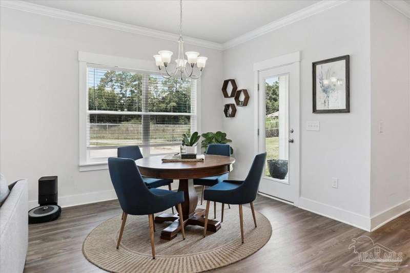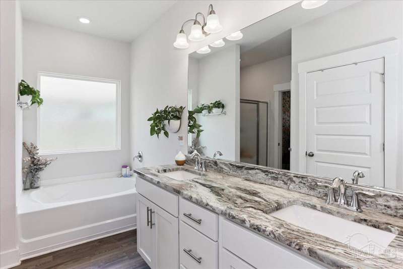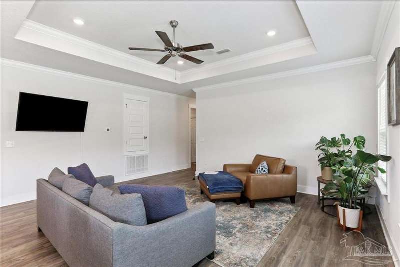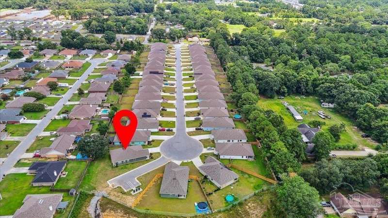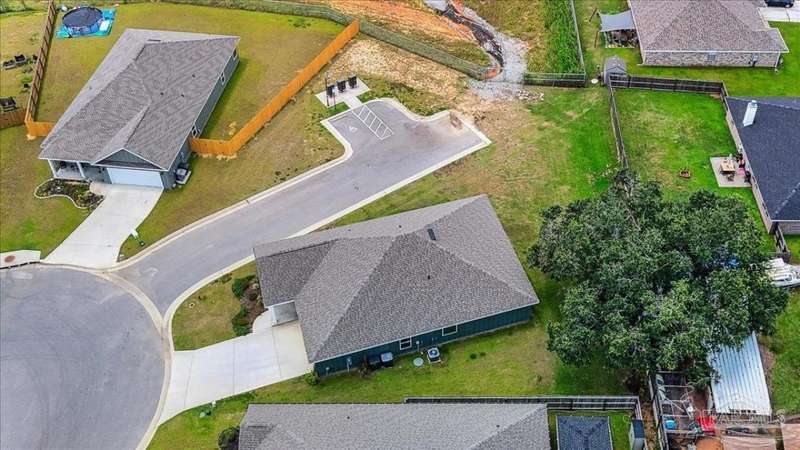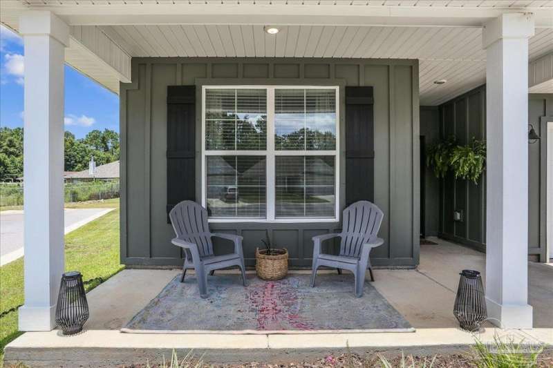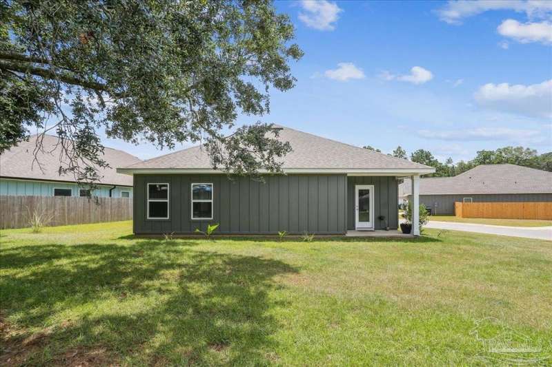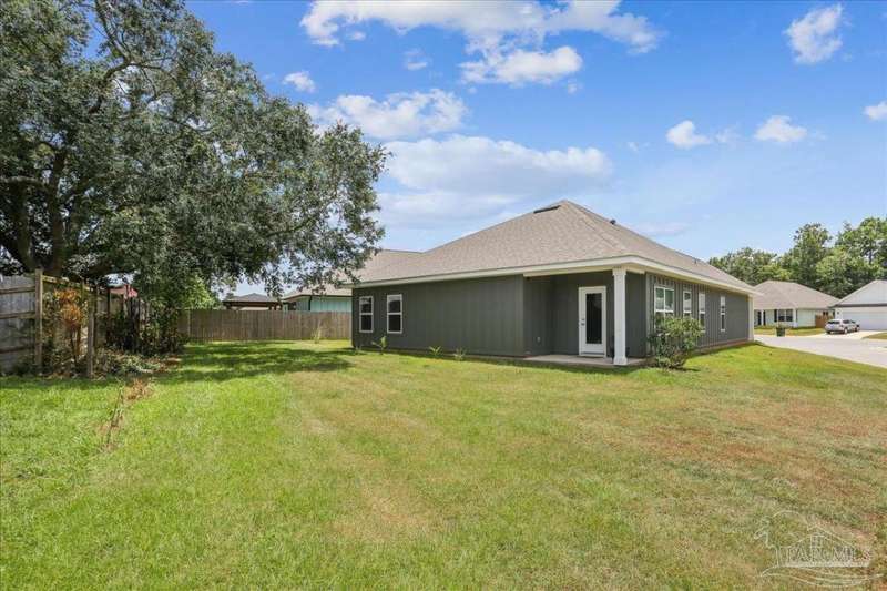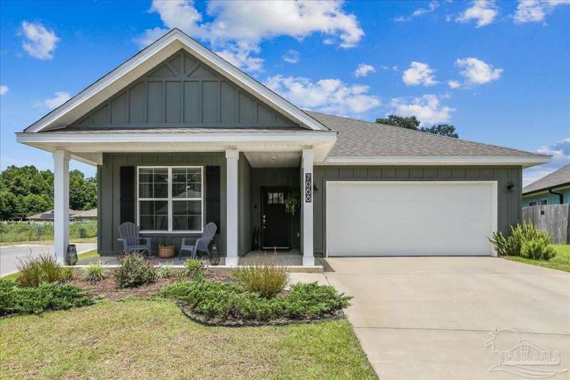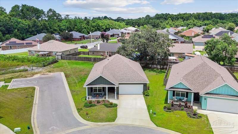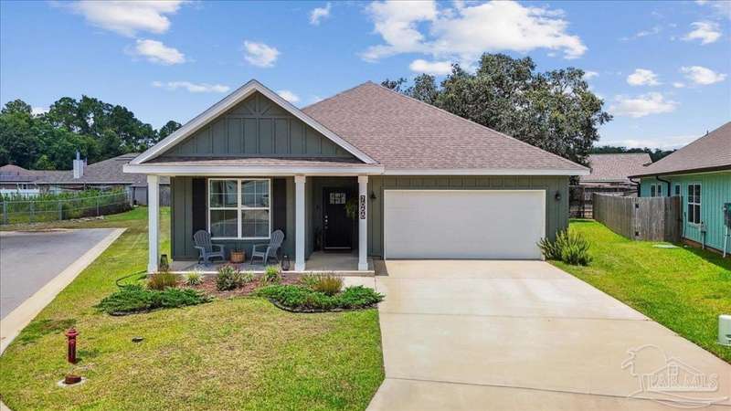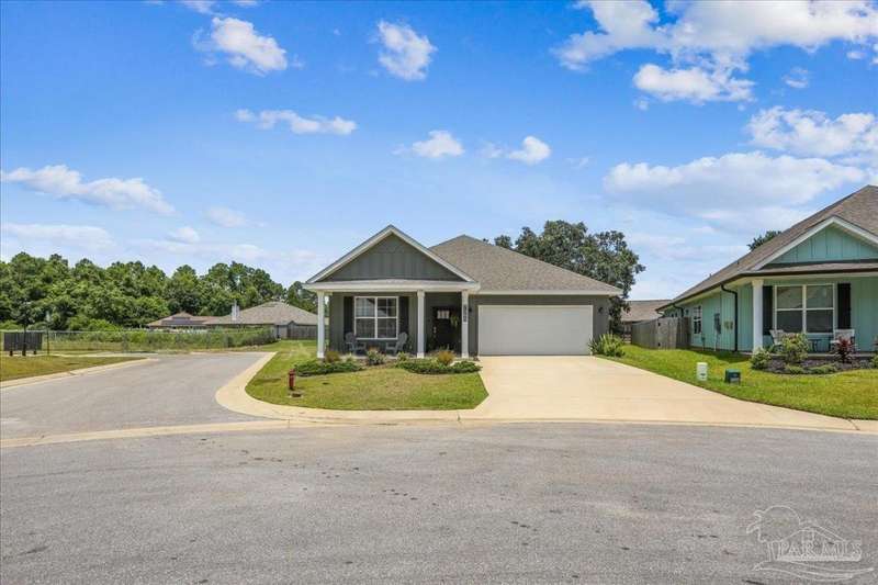 ADORABLE COTTAGE!!4/2 Craftsman cottage home with 1815 sq ft, double car garage, and covered back porch. This open floor plan has 9' ceilings throughout with tray ceilings finished in crown molding and ceiling fans in the great room and master bedroom. Other features include: granite countertops, stainless steel appliances, beautiful upgraded wood cabinetry, and luxury vinyl plank flooring in all areas except bedrooms. Master bath has garden tub, separate shower, double vanity, water closet, and a large walk-in closet with access to the laundry room for owner's convenience. This home also features low-maintenance, four-side hardi board , cozy cottage feel with modern amenities, surrounded by nature, close to major employment centers like Navy Federal, and minutes from the interstate and Escambia County's new Beulah Middle School. This home is located at the end of the cul de sac and has additional parking by the mail centre.