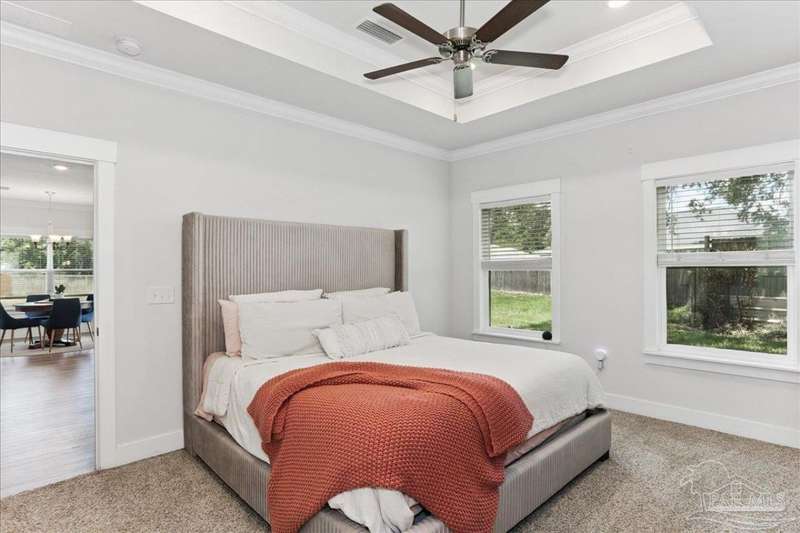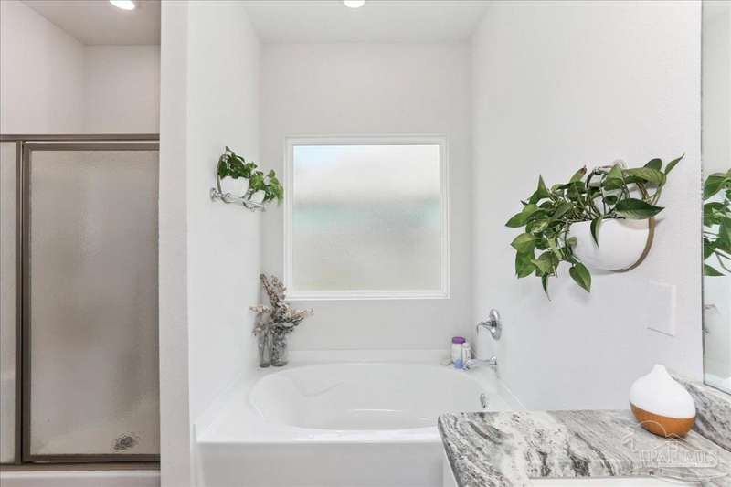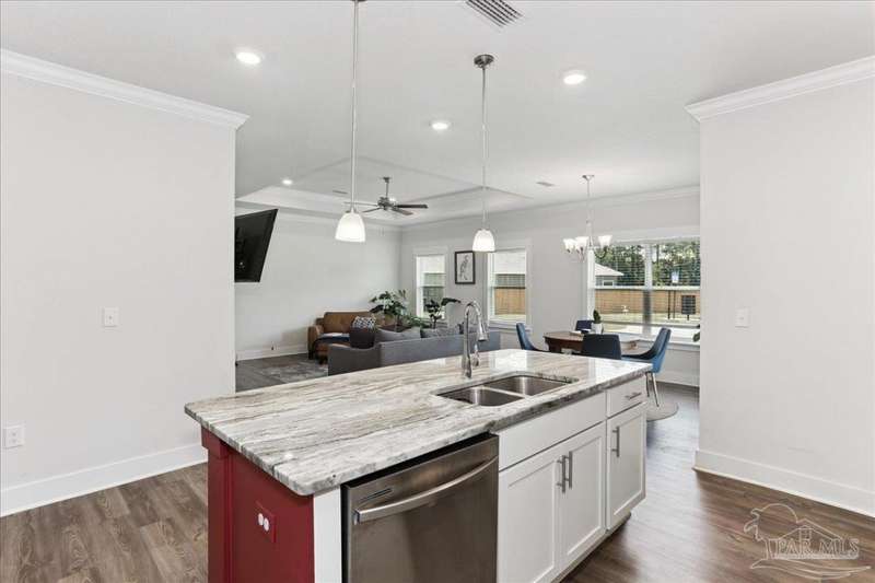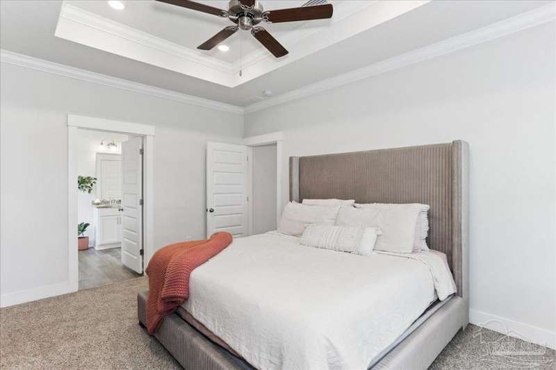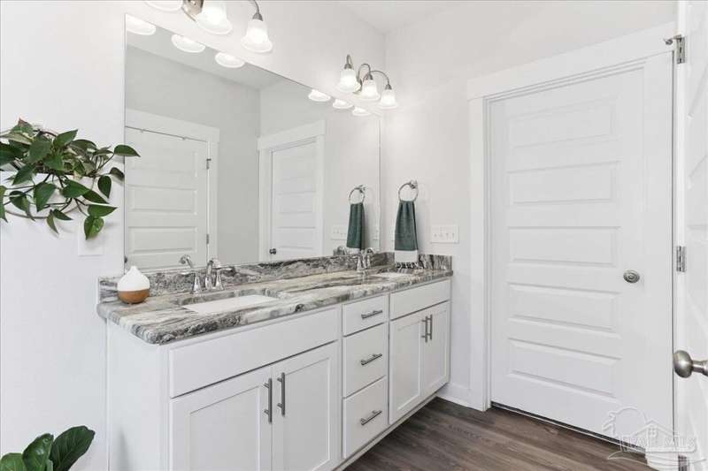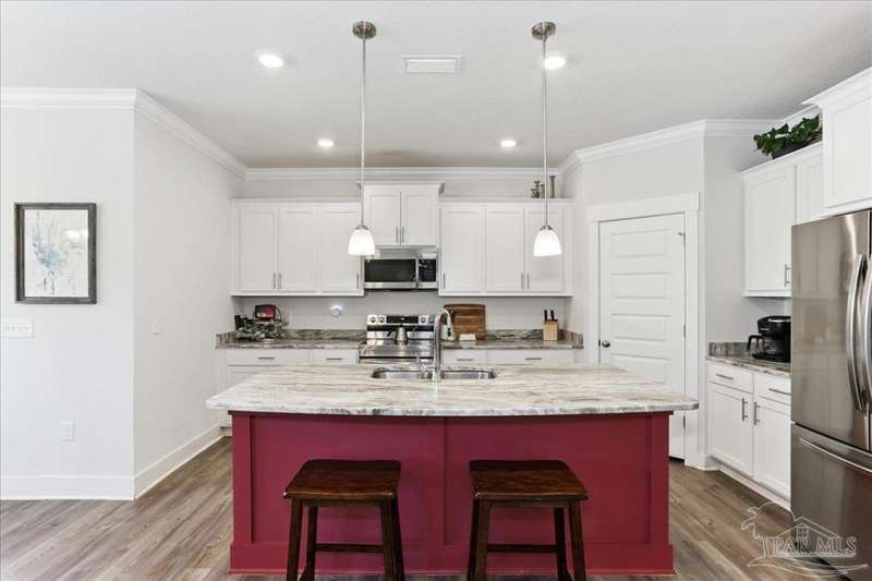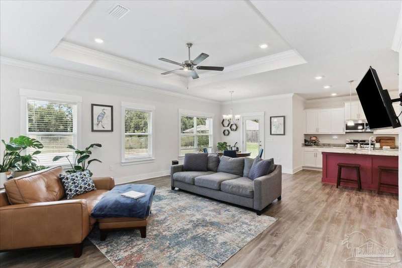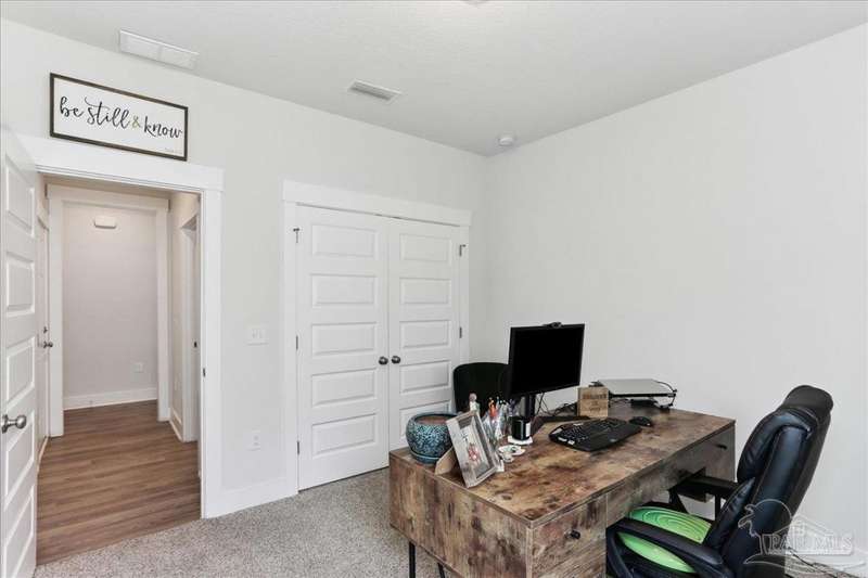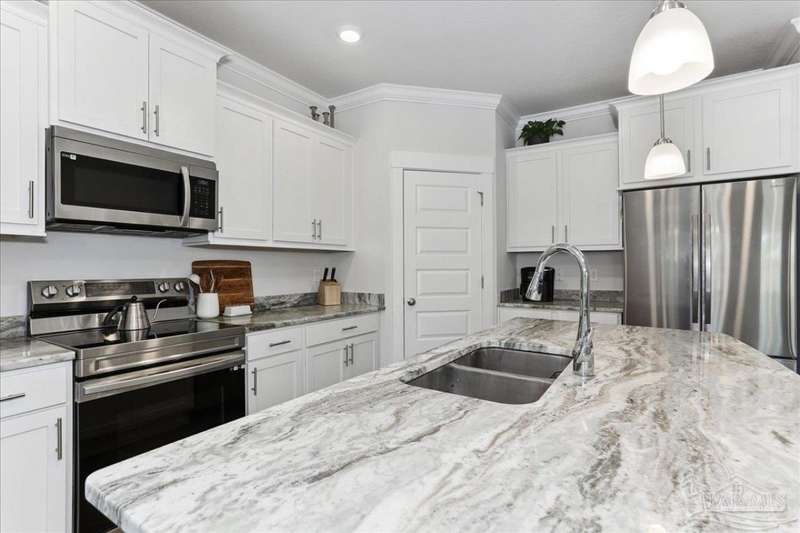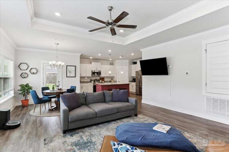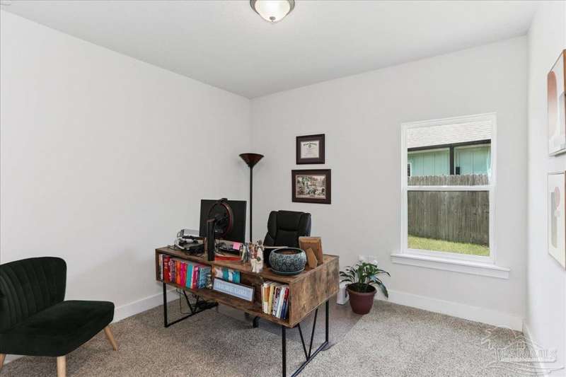ADORABLE COTTAGE!!4/2 Craftsman cottage home with 1815 sq ft, double car garage, and covered back porch. This open floor plan has 9' ceilings throughout with tray ceilings finished in crown molding and ceiling fans in the great room and master bedroom. Other features include: granite countertops, stainless steel appliances, beautiful upgraded wood cabinetry, and luxury vinyl plank flooring in all areas except bedrooms. Master bath has garden tub, separate shower, double vanity, water closet, and a large walk-in closet with access to the laundry room for owner's convenience. This home also features low-maintenance, four-side hardi board , cozy cottage feel with modern amenities, surrounded by nature, close to major employment centers like Navy Federal, and minutes from the interstate and Escambia County's new Beulah Middle School. This home is located at the end of the cul de sac and has additional parking by the mail centre.