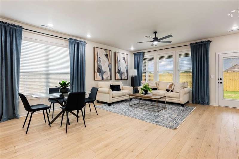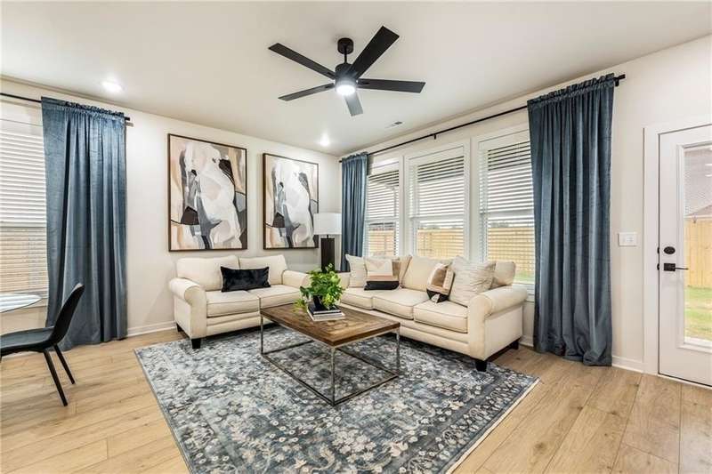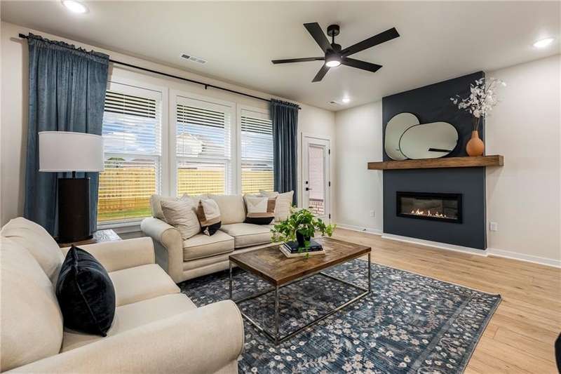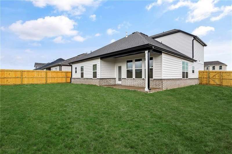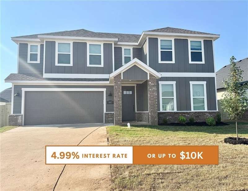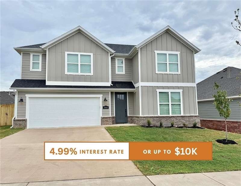 MODEL HOME that perfectly showcases the style, quality, and luxurious features you can expect in your dream home. Fence, blinds & gutters included! Discover your ultimate home in the Osage Hills neighborhood. Delta plan with garage on the right & South facing! 9 ft ceilings, linear electric fireplace in the living room, LVP flooring throughout the main living areas & primary bedroom, quartz countertops & more. Chef's kitchen boasting frigidaire stainless steel appliances, gas range, pantry, quartz countertops, bar pull handles, large island & gorgeous backsplash. Luxurious primary bedroom features abundant natural light, while the spa-like primary bathroom offers a walk-in shower, tub, double sinks & spacious walk-in closets. Additional features include a study on the main level, two large secondary bedrooms upstairs & a separate laundry room. Nestled on a generous lot with covered patio that overlooks the serene sodded, fully fenced backyard. Sturdy concrete siding and brick!