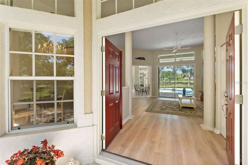 This pool home, on the golf course, in the coveted ocean front community of Hammock Dunes, is in pristine condition. Walk or ride your bike to the beach or enjoy all the amenities of the private Hammock Dunes Club, which has memberships available, but not required. The home is situated on a beautifully kept, well-maintained yard, with awesome views of the golf course. No expense was spared to make this yard a beautiful oasis and for easy upkeep the sprinkler system was updated and reconfigured. Several updates in the last 4 years include new stainless appliances, LVP flooring, washer and dryer, interior paint, and pool resurfacing that make this home move in ready. The level of maintenance on this home will impress the most fastidious homeowner. A perfect home, with an open floor plan, for entertaining friends and family with 4 bedrooms and 3 baths plus an outdoor shower for easy clean-up after a day at the beach. One bedroom has been used as a library/office and is perfect for work at home. Palm Coast is the best kept secret in Florida. Miles of beautiful beaches, over 125 miles of bike paths, beautiful parks along Intracoastal Waterway, a thriving art & theater community, home of famous artists, golf courses for every day, fishing, boating, wind sailing, surfing, canoeing are just a few of the things to do. Orlando and Disney World are close for a day outing and Jacksonville with all the shopping one could desire & the famous Mayo Clinic is one hour. NASCAR & ST. Augustine are within a thirty-minute drive. The Hammock Dunes Club has 2 golf, courses, tennis, pickle ball, state of the art fitness center, olympic size pool and splash pad, croquet and restaurants. Check out Hammock Dunes Club website for all the amenities available.