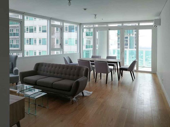 This luxury high-zone unit at the Park Terraces features two-bedroom, two-bathroom, a maid's room with its own T&B, one parking slot, and a big 6-sqm balcony facing Laguna. This semi-furnished apartment also features a spacious open-design kitchen.