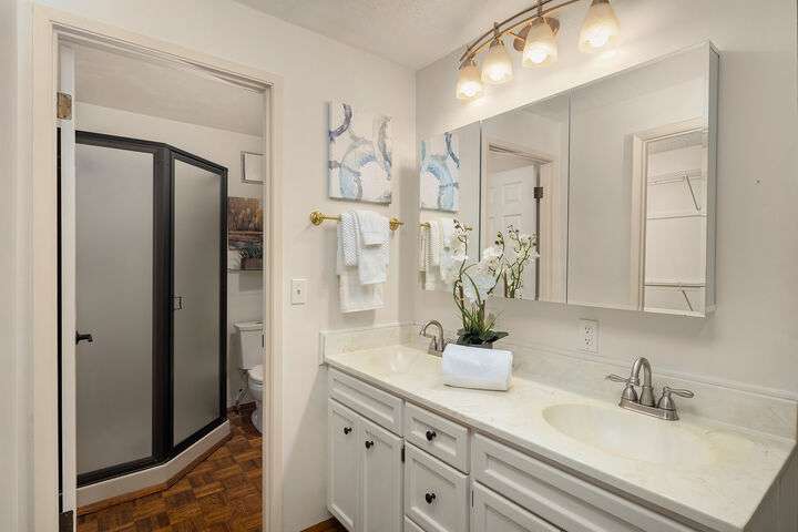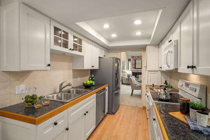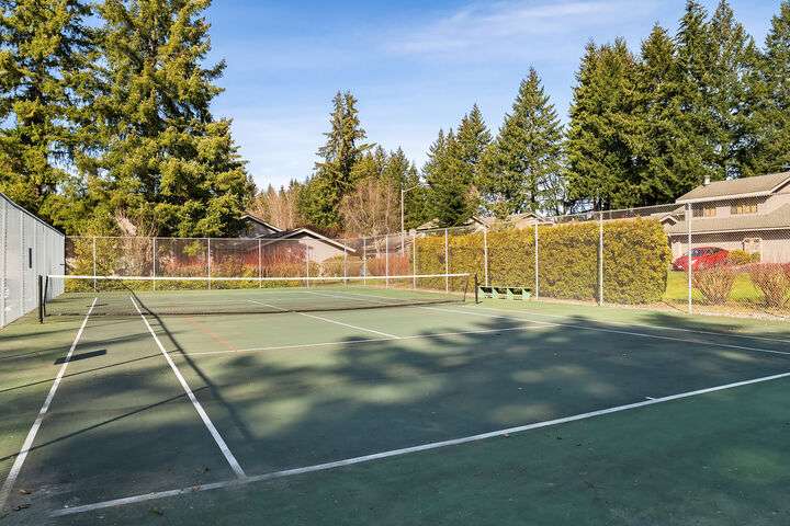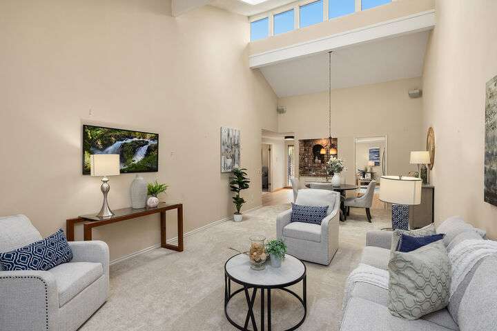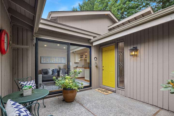 Nestled in nature, this rarely available, single-level end-unit home in sought-after Woodcreek features vaulted ceilings, skylights, and clerestory windows that make it feel light and spacious. Enjoy newly refinished hardwoods, fresh carpet, and a primary suite with walk-in closet, three-quarter bath, and private patio access. Two additional bedrooms offer flexibility for guests or an office. Extras include finished attic storage, central AC, 2-car garage, and two enclosed patios. Woodcreek offers manicured grounds, pool, tennis/pickleball, and clubhouse. Conveniently located close to shopping, schools, trails, and transit. Pre-inspected.