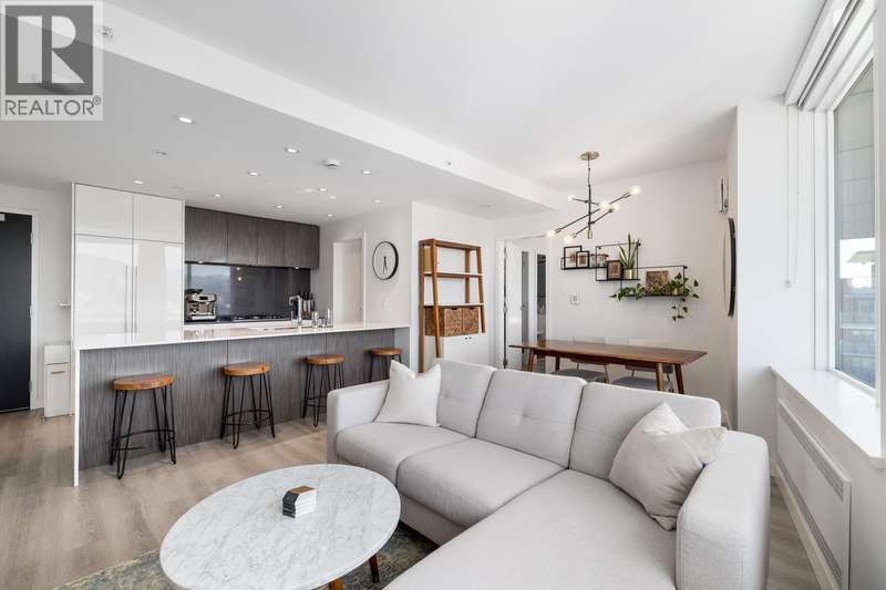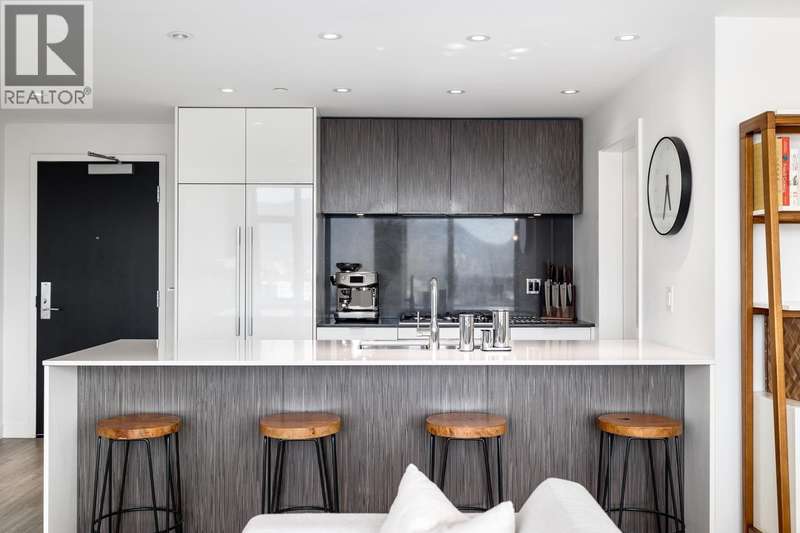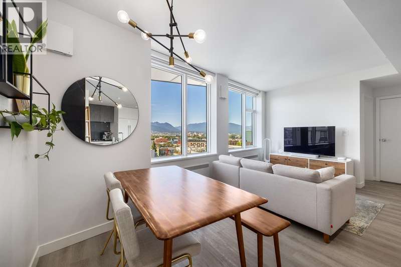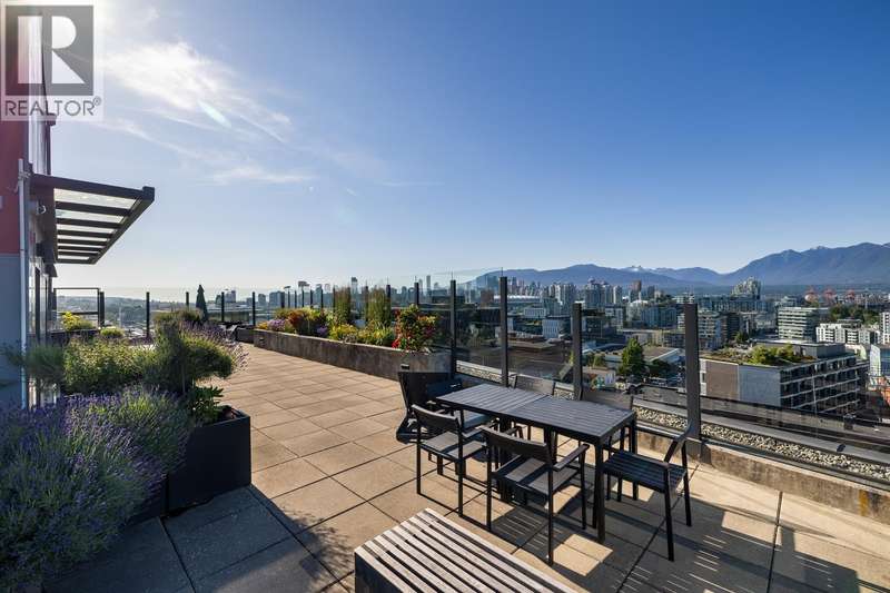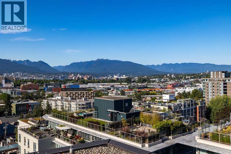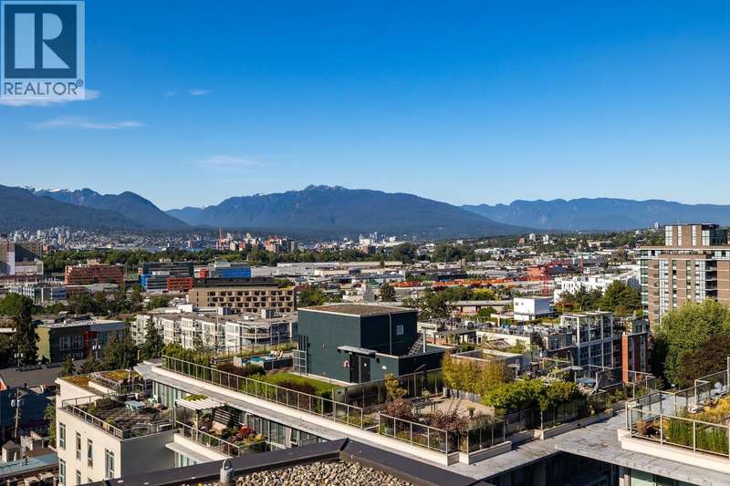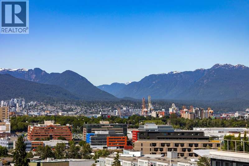 Spectacular views of the North Shore Mountains & City skyline from this beautiful Sub-Penthouse in vibrant Mt. Pleasant! Welcome to Ellsworth, a LEED certified concrete building just steps to Main St, this bright north-facing, open-concept 2 bedroom 2 bathroom+Flex/Pantry home with no wasted space boasts high-end finishings, a kitchen equipped with gas range & integrated Fisher Paykel appliances complimented by quartz countertops. Energy efficient hydronic heating & cooling system plus a Parking Stall & Bike Locker included in this pet & rental-friendly building. BONUS: Private 112 sq.ft. Storage Room. Impressive amenities include a common 3,500 sq.ft. Rooftop terrace with BBQs & fire table, concierge & lounge with pool table & kitchen. (id:58403)
