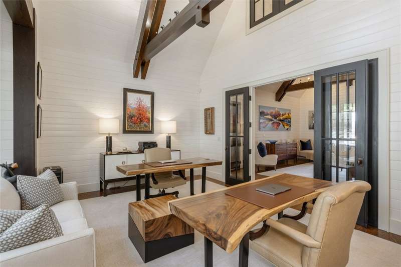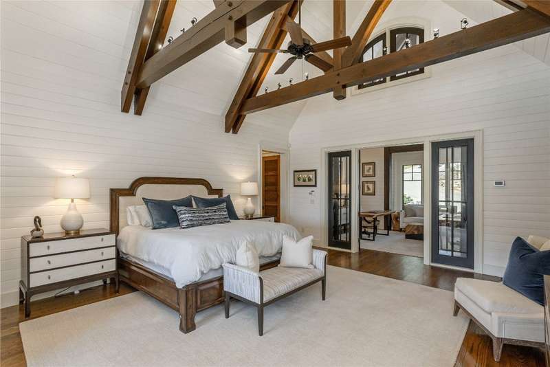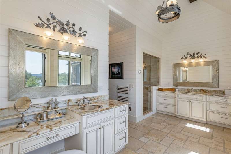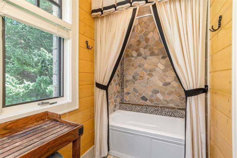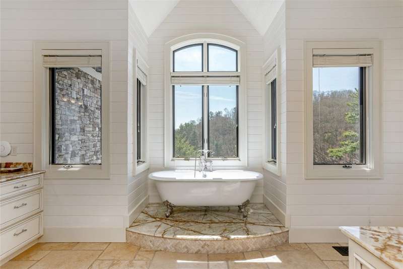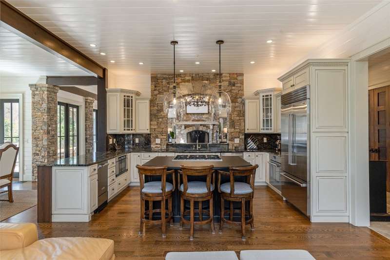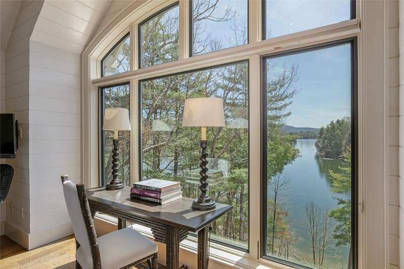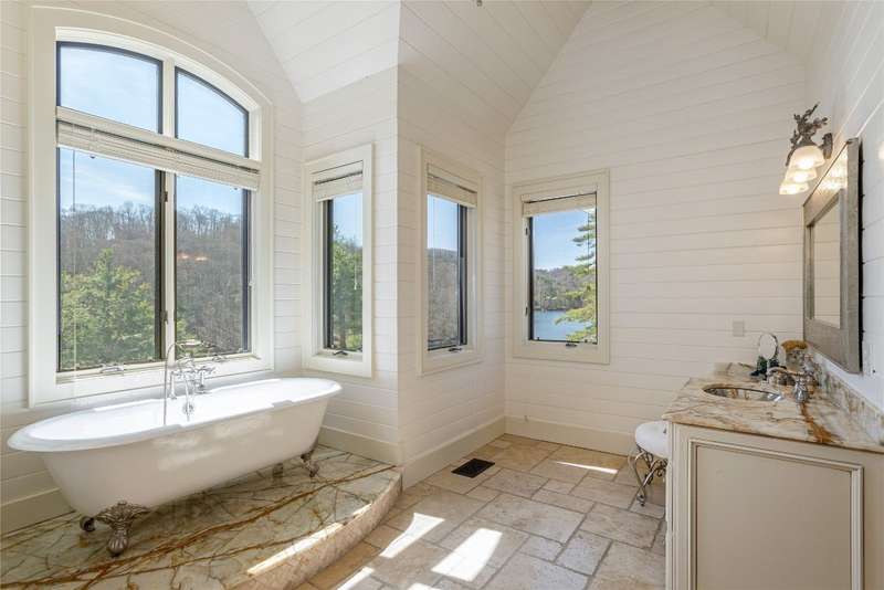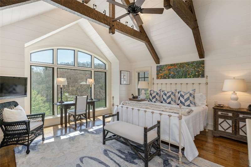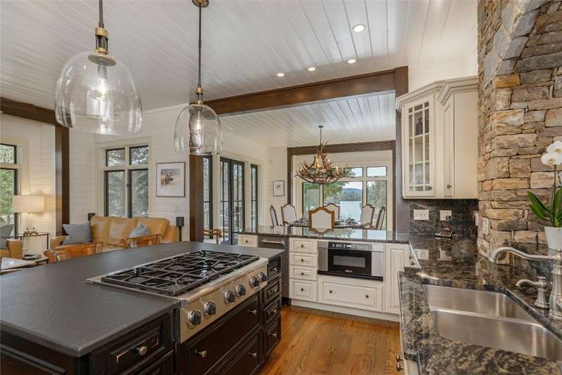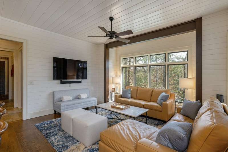 Experience an architectural masterpiece by Tim Greene with this exceptional property on Lake Glenville. Situated on a premier lot with breathtaking panoramic lake views, this home offers an unparalleled combination of thoughtful design, superior craftsmanship, and effortless living. The home has been beautifully decorated by a local designer, and is now being offered fully furnished. A true turnkey and move-in ready home. From its 18-inch foundation walls to the massive beams and beautifully crafted stacked stone, both inside and outside, the residence is as enduring as it is stunning. Shiplap walls, wood ceilings, and hardwood floors throughout most of the home add timeless character. The open floor plan is designed for both daily living and entertaining. Expansive windows showcasing the lake bring sunlight into the spacious living, dining, and kitchen areas. The main-level primary suite features serene views and a beautifully appointed bathroom, while upstairs there are three private ensuite guest bedrooms, creating a welcoming haven for friends and family, plus abundant storage throughout the property. The outdoor areas are thoughtfully designed with expansive stone patios, green spaces, and a custom fire pit that invites gatherings and relaxation, while multiple screened porches - including one with a wood-burning fireplace - offer panoramic views and cozy nooks for quiet moments. The private dock provides easy access to activities on Lake Glenville. Start the day with coffee while enjoying long-range southerly views, watch waterfowl gliding across the lake, or paddleboard to a nearby waterfall. Cruise across the water to visit a bald eagle nest, or host guests for July 4th fireworks over the lake, creating unforgettable memories. Located in the gated enclave of Stone Pointe with just eight exclusive lakefront lots, this property delivers both privacy and a welcoming sense of community. Meticulously cared for and updated by the current owners, the move-in ready home offers a perfect space for lakeside living.