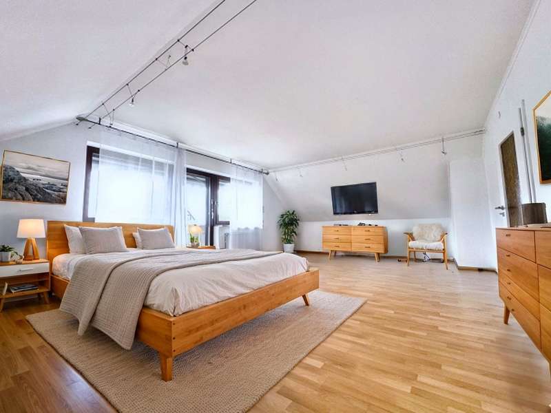 Welcome to a rare opportunity: A well-kept two-family house in a quiet residential area is for sale. With its generous living space of approx. 200 m² and a plot of approx. 615 m², it creates the ideal conditions for comfortable living - whether for families, several generations or even for combining living and working under one roof. The property was built in 1980 and is in very good condition. The solid construction and well thought-out room layout offer a variety of possible uses across a total of six rooms. The first floor boasts a spacious living and dining area with an open-plan design. Large window fronts provide plenty of natural light and a pleasant view of the well-tended garden. The adjoining kitchen is functionally equipped and offers enough space for a cozy dining area. There are further living spaces on the upper floor, which has been used as an independent apartment. Here you will find a spacious living/dining room with access to the balcony, which could be converted into a bedroom. The space is complemented by a second bathroom, a large modern kitchen and 2 additional rooms that can be used flexibly as a study, guest room or hobby room. The house has a spacious garage, which offers enough space for a vehicle as well as for bicycles, garden tools or storage space. The location of the property impresses with its tranquillity and at the same time its proximity to urban infrastructure. Shopping facilities, schools, nurseries and public transport are all within easy reach, making the location particularly attractive for families or professionals. This two-family home offers a wide range of possible uses and is suitable as a spacious owner-occupied home as well as for part-letting or as a multi-generational home. Anyone looking for a solid, quiet home with plenty of space and potential will find exactly what they are looking for here. We would be happy to provide you with further information or arrange a personal viewing appointment. Take advantage of this opportunity - perhaps this house will soon be your new home.