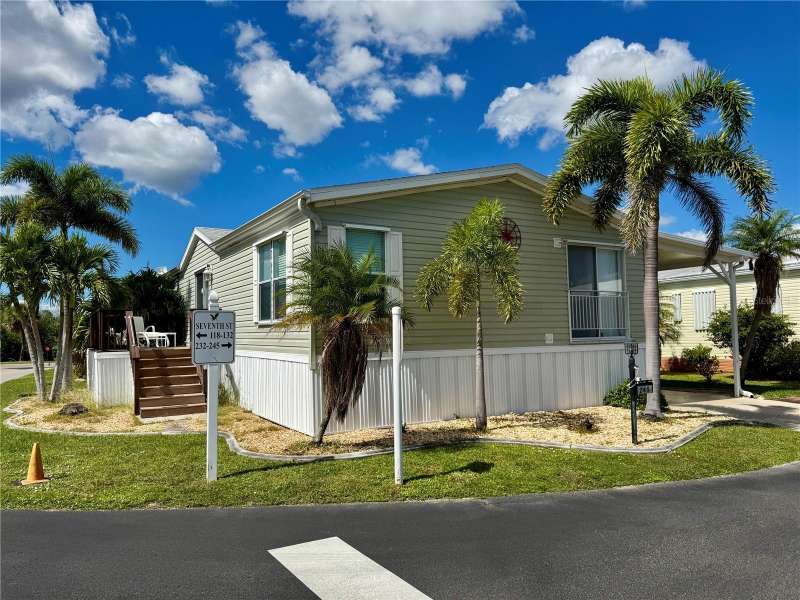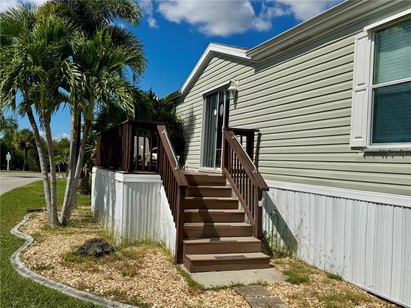 Great opportunity to live in a desirable 55+ waterfront community! Located in Eagle Point, on scenic Alligator Creek in Punta Gorda, this furnished 2-bedroom, 2-bath home (built in 2005) offers comfort and coastal charm. Enjoy relaxing on your porch surrounded by palm trees, or make use of the separate workshop/storage area for hobbies and extra space or venture outside to ride your bike or walk around the relaxing waterfront area. Cost comparison where can you live in Fl, keep a boat in the storage area on site with a community boat ramp with access to Alligator Creek and beyond!!! As a park share community buyers purchase 20 shares at $1,000 each, which reduces quarterly dues and is refundable upon resale. HOA dues include water, sewer, trash, recreational facilities, and road maintenance. Eagle Point is an active waterfront community offering a variety of amenities and activities, including a heated pool, social hall with Wi-Fi, library, recreation room with card and pool tables, fire pit area, bingo nights, large grilling area, and a community dock perfect for fishing, gathering with friends or launching your kayak on alligator creek. Cost comparison where can you live in Fl, keep a boat in the storage area on site use the community boat ramp with access to Alligator Creek and beyond!!!Experience the best of Florida living!