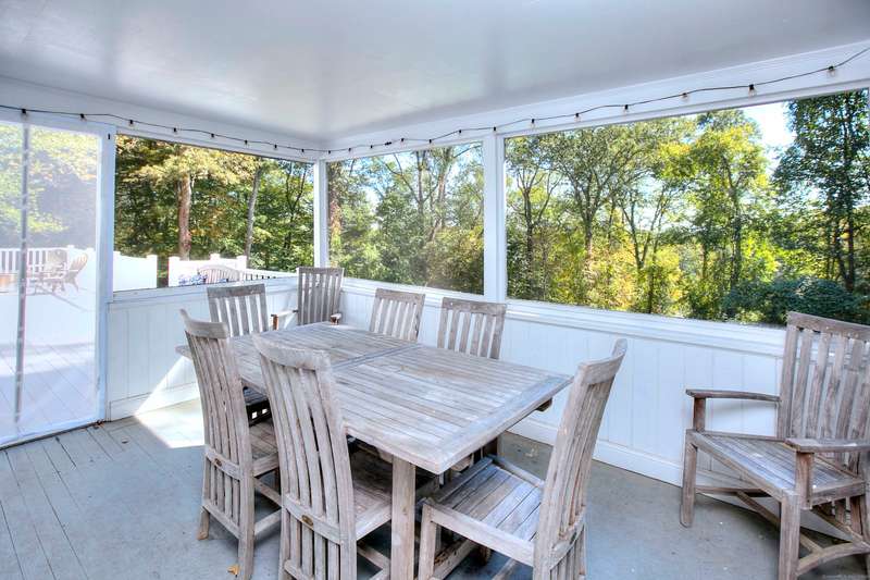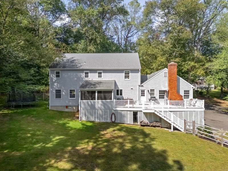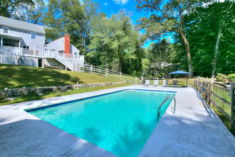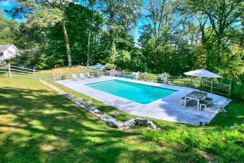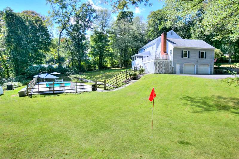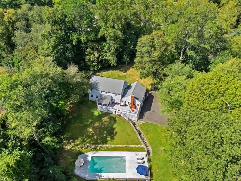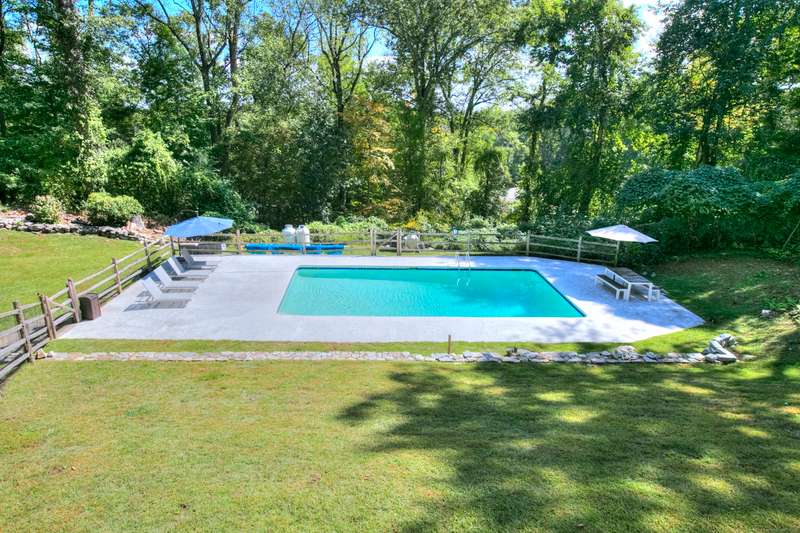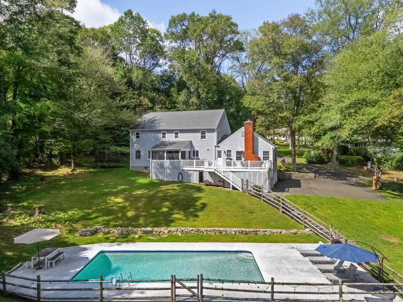 Welcome to 21 East Hill Road, a timeless New England Colonial tucked away on a quiet North Stamford cul-de-sac. Perfectly situated in a sought-after location, this home rests on 1.36 acres of parklike grounds, framed by mature greenery and highlighted by a heated pool. The setting is both peaceful and serene, offering a true retreat. Inside, spacious rooms and a functional floor plan are accented by hardwood floors and two fireplaces that add warmth and character. The eat-in kitchen is a standout, adjoining the gracious front-to-back living room on one side and a generous yet cozy family room on the other. A formal dining room adds elegance for entertaining, while casual kitchen dining flows to the screened porch and Trex deck, where sweeping views of the rear yard and pool set the stage for gatherings or quiet evenings outdoors. With four bedrooms plus a main-floor flex room/office, the home adapts seamlessly to today's lifestyle-ideal for a guest suite or work-from-home space. The pr