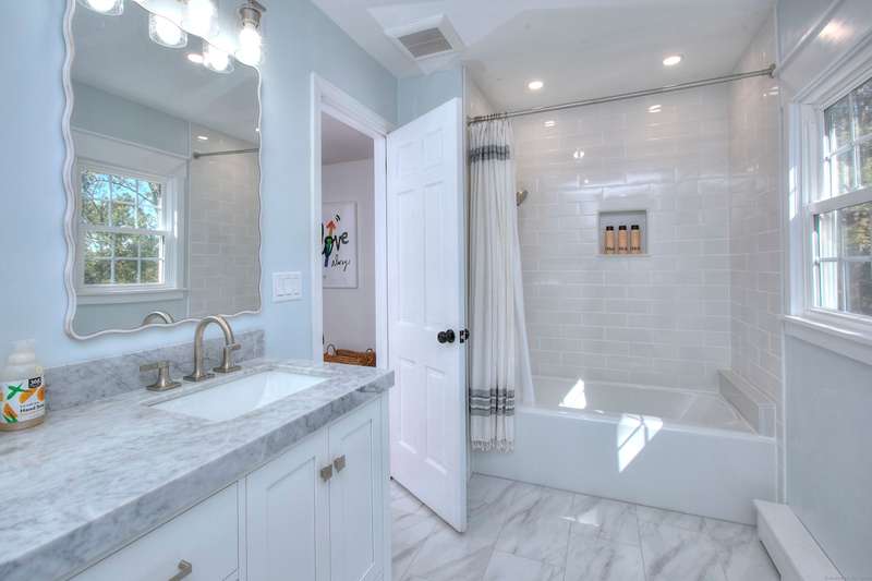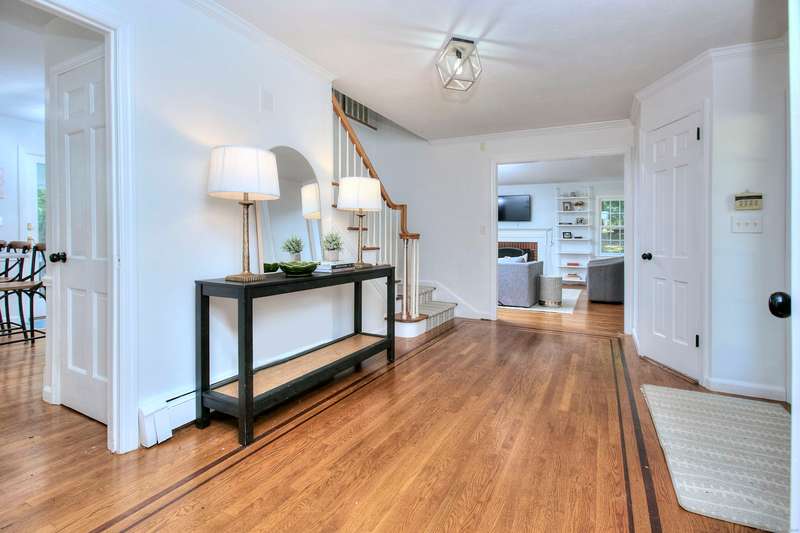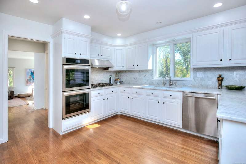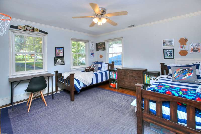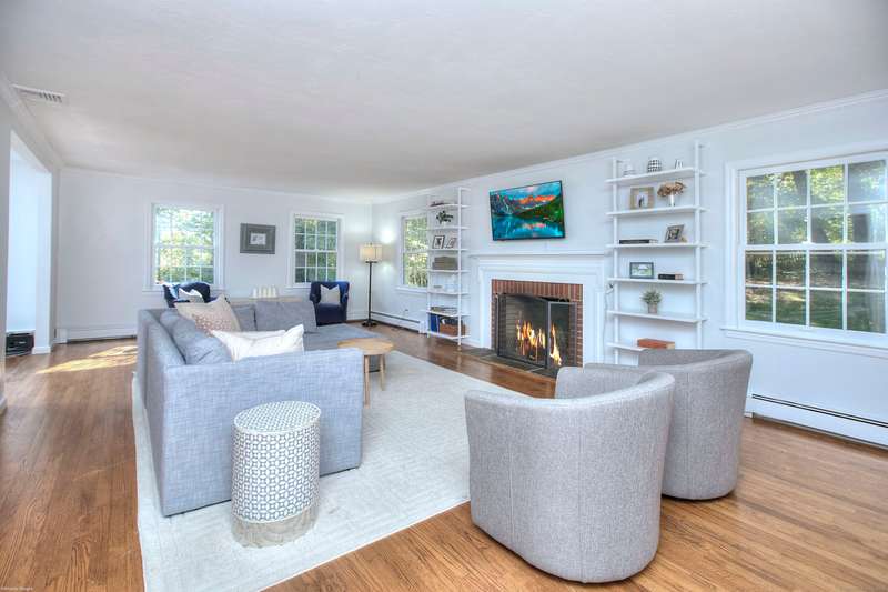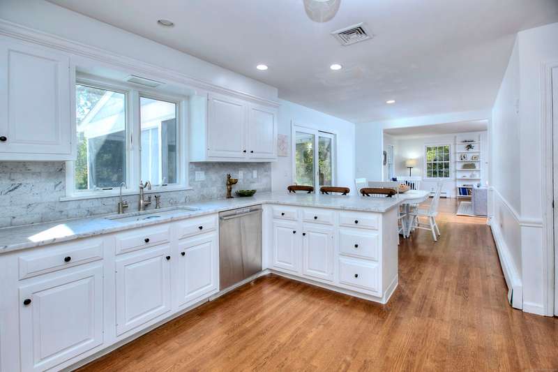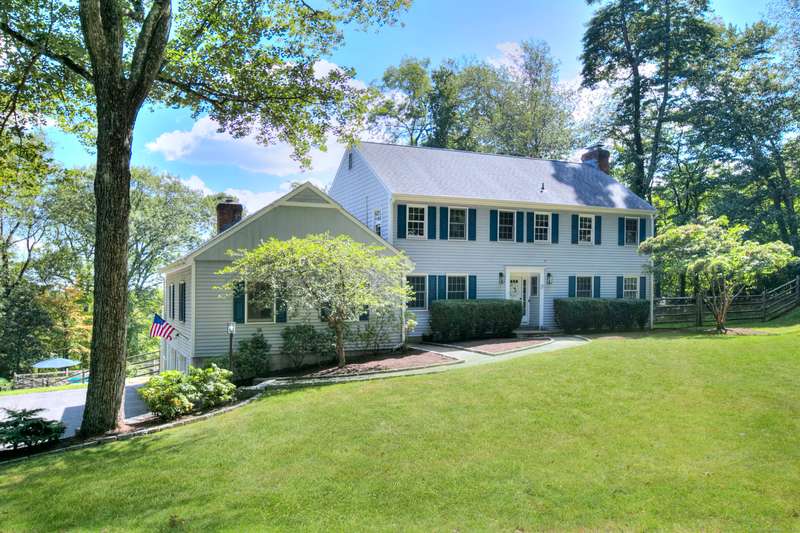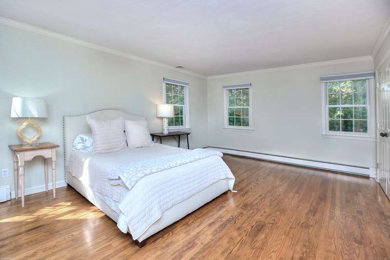 Welcome to 21 East Hill Road, a timeless New England Colonial tucked away on a quiet North Stamford cul-de-sac. Perfectly situated in a sought-after location, this home rests on 1.36 acres of parklike grounds, framed by mature greenery and highlighted by a heated pool. The setting is both peaceful and serene, offering a true retreat. Inside, spacious rooms and a functional floor plan are accented by hardwood floors and two fireplaces that add warmth and character. The eat-in kitchen is a standout, adjoining the gracious front-to-back living room on one side and a generous yet cozy family room on the other. A formal dining room adds elegance for entertaining, while casual kitchen dining flows to the screened porch and Trex deck, where sweeping views of the rear yard and pool set the stage for gatherings or quiet evenings outdoors. With four bedrooms plus a main-floor flex room/office, the home adapts seamlessly to today's lifestyle-ideal for a guest suite or work-from-home space. The pr