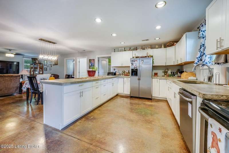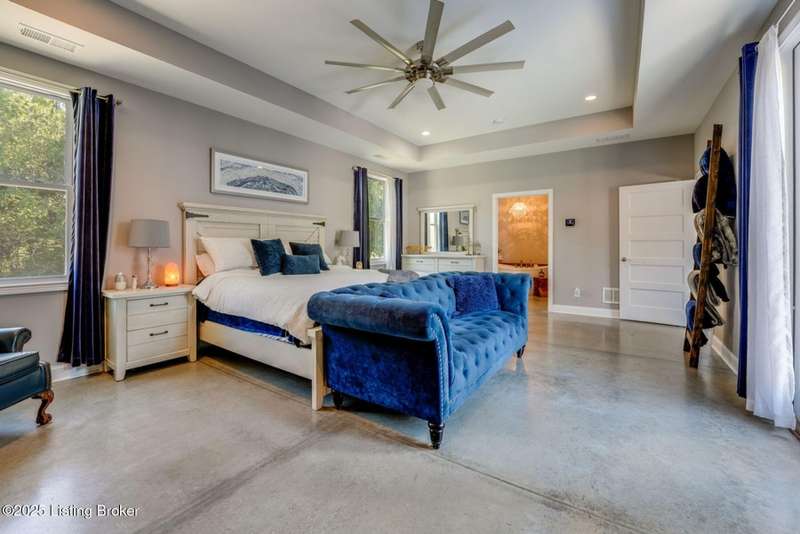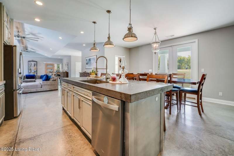 Escape to 13.49 private acres with two unique homes in Taylorsville. This property is conveniently located just 2.5 miles from Taylorsville Lake Marina, 17 miles to the Gene Snyder Freeway, and 18 miles to The Outlet Shoppes of the Bluegrass. The main residence was thoughtfully designed with extensive decorative concrete details and a floor plan that wraps around the heated in-ground salt water pool. The home is flooded with natural light from walls of windows. Inside you'll find 4 bedrooms, 3 full baths, and a spacious bonus room above the garage. A second home on the property offers 2 bedrooms, 2 baths, and a 2-car garage, ideal for guests, family, or income potential.