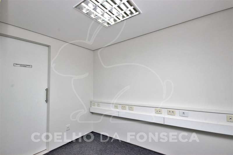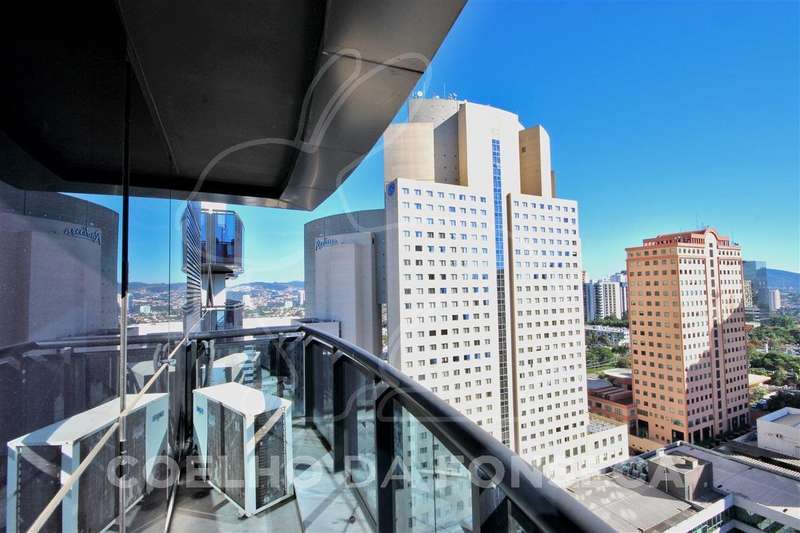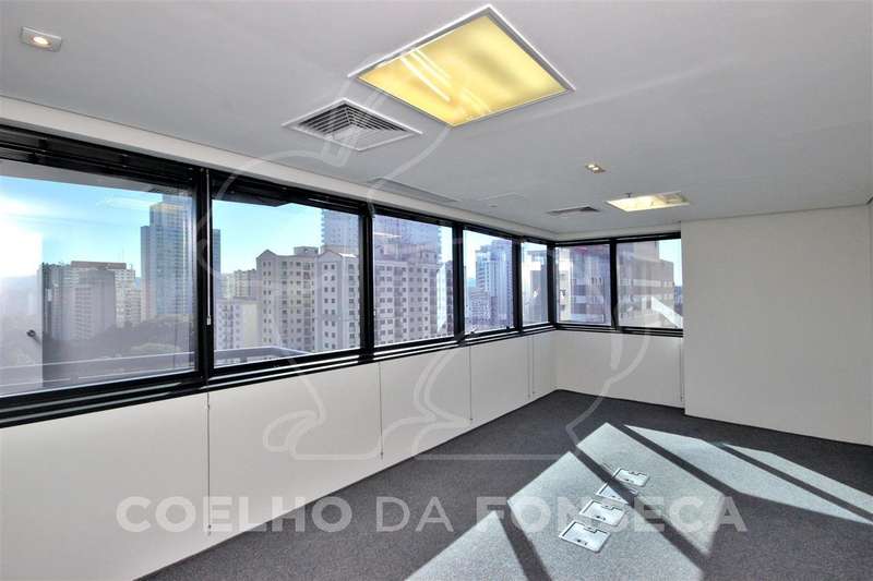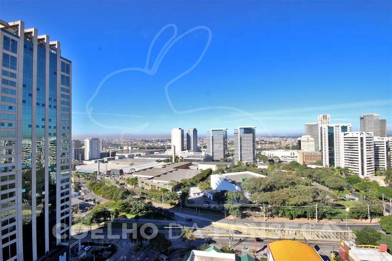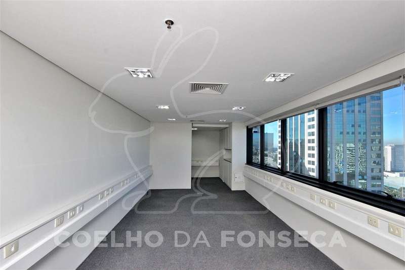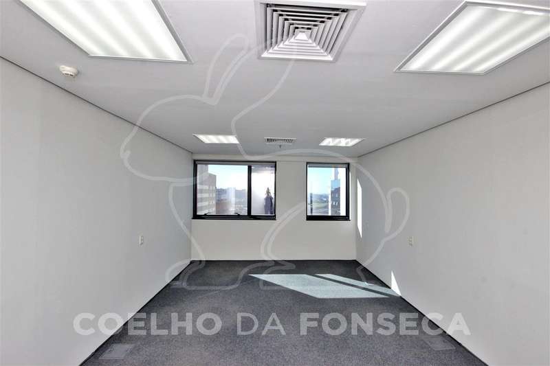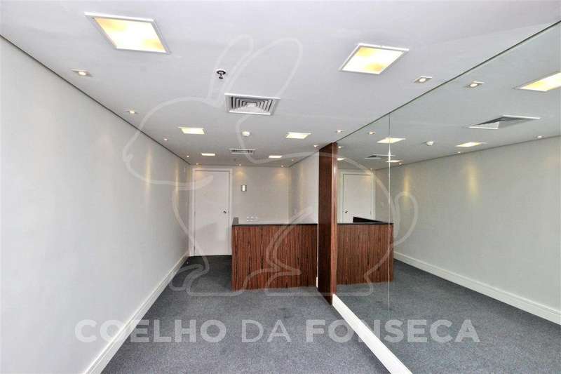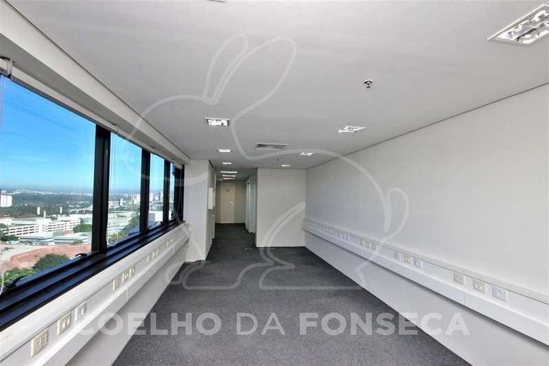 Sala comercial em andar alto com terraço. Mobiliada com armários planejados e divisórias em drywall. Fechaduras digitais, ar condicionado, cabine e piso elevado. Prédio moderno e inteligente.