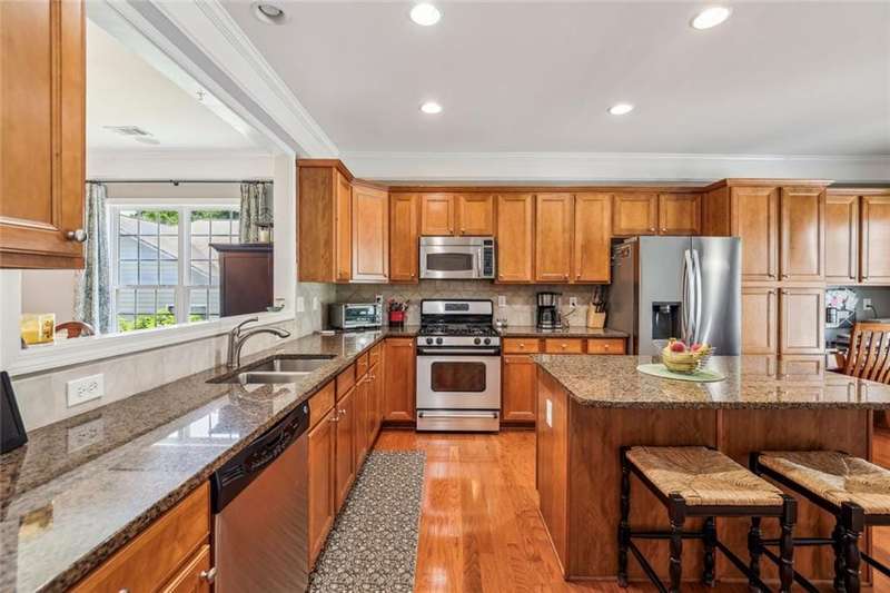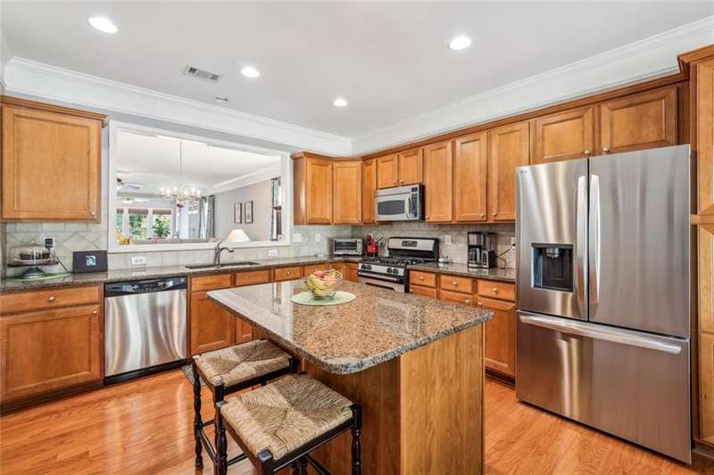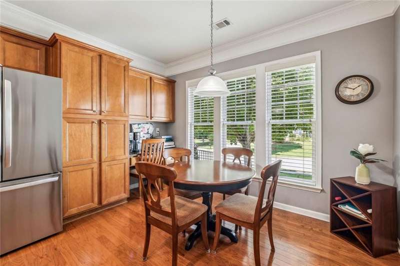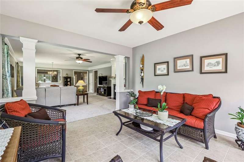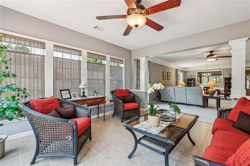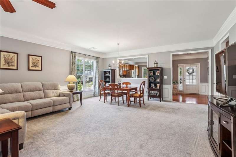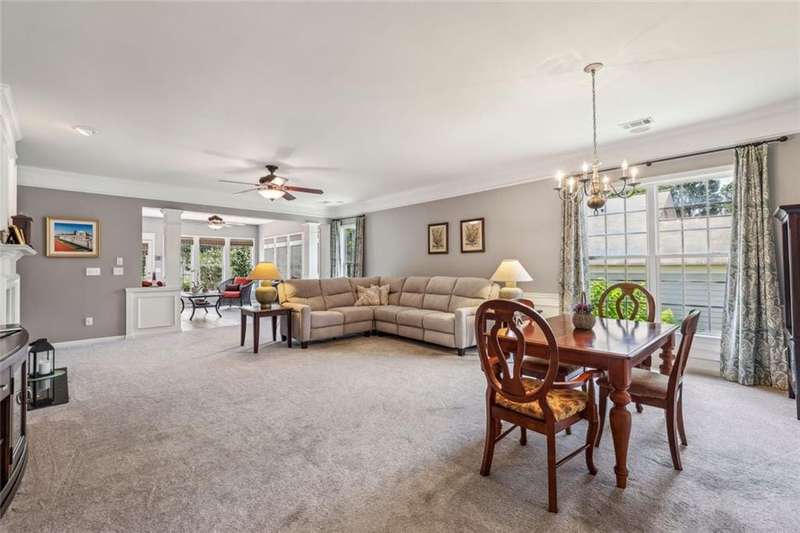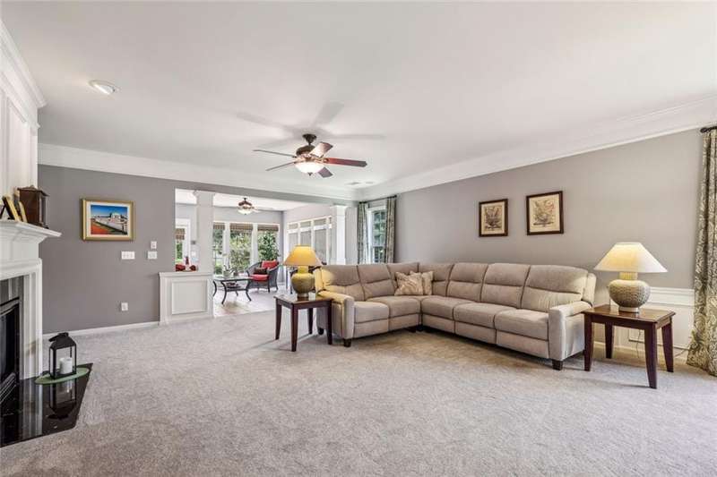 Charming Craftsman Ranch in Coveted Kingswood Community has been meticulously maintained and kept in pristine condition. This cheerful and inviting home is filled with warmth, charm, thoughtful upgrades and outstanding curb appealperfectly suited for relaxed, low-maintenance living.Residents of Kingswood enjoy resort-style amenities, including a clubhouse, swimming pool, tennis and pickleball courts, and a dog park. A vibrant HOA hosts social events, exercise classes, and holiday gatherings. Even betteryour monthly HOA dues include full lawn care and shrub care for your yard.A Spacious and Elegant Interior; step through the impressive foyer into a sun-drenched open-concept living space that includes the Kitchen, Breakfast Area, Dining Room, Living Room, and Sunroom. Light pours in from three sides, creating a welcoming environment perfect for entertaining or everyday comfort. Fresh neutral paint, upgraded carpet, and wide crown molding throughout elevate the look and feel of the home. The smartly-designed Kitchen features richly stained cabinets, granite countertops, tile backsplash, and stainless steel appliances, including a gas range. A floor-to-ceiling pantry cabinet, built-in desk, center island, and a cozy breakfast area make this kitchen as functional as it is beautiful.The expansive Living/Dining Room centers around a gas fireplace and flows seamlessly into a tiled-floor Sunroomthe ideal spot to enjoy your morning coffee or unwind with a good book. Step outside to a custom brick patio that overlooks a professionally landscaped, scenic rolling backyardperfect for entertaining, painting, or peaceful reflection. The oversized Primary Suite features a tray ceiling, extra moldings, and large windows capturing serene backyard views. The ensuite bath offers dual vanities, a soaking tub, separate shower, private water closet, and a generous walk-in closet. Additional spaces to live and work; A secondary Bedroom with adjacent full Bath accommodates guests comfortably. A private Home Office with glass-paneled doors offers flexible useTV room, hobby space, or extra guest quarters. The full-size Laundry Room and kitchen-level 2-car Garage provide everyday convenience.The Kingswood at Castleberry neighborhood is perfectly situated in sought-after South Forsyth; minutes from GA-400, The Collection at Forsyth, Northside Hospital, Cumming City Center, and the new Whole Foods Market opening this fall.