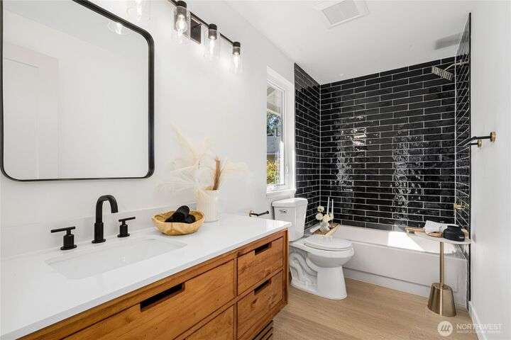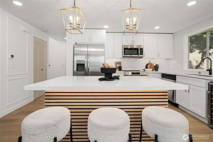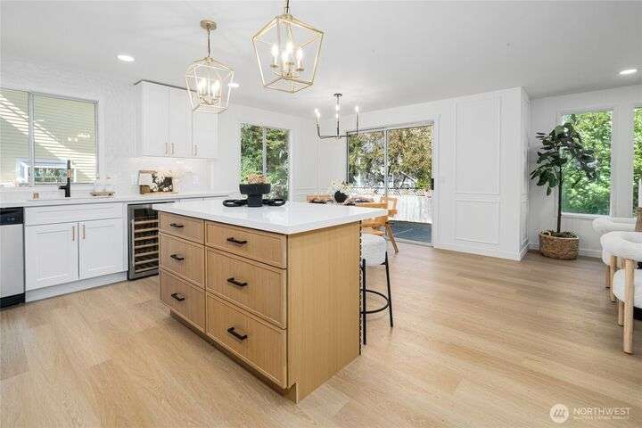 Luxuriously remodeled in Klahanie’s coveted The Ridge, this stunning home shines with designer style and thoughtful updates throughout. Enjoy an all-new open floor plan connecting the new gourmet kitchen—featuring custom cabinetry, under mounted lighting, quartz counters, stainless appliances, beverage fridge and farm sink—to the spacious living area with an elegant new fireplace. LVP flooring, new carpet, lighting and designer picture-frame molding add modern sophistication. Bathrooms are fully remodeled with stylish tile, vanities with under cabinet lighting and new fixtures. Spacious primary suite with walk-in closet. Set on a large, flat and private lot with access to parks, pools, and trails. Issaquah Schools and easy I-90 access.