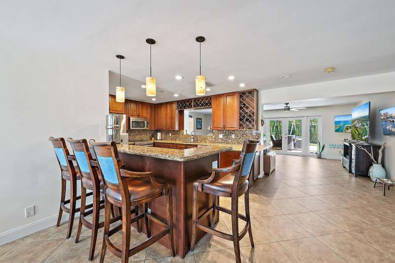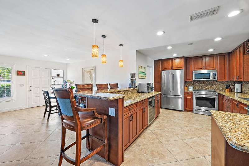Fully furnished, Turnkey, Seasonal rental available January 15th through April 15, 2026.Discover your ideal North Palm Beach retreat, three bedrooms & 3 baths. This beautifully appointed pool home combines luxury, comfort, and convenience in a tranquil neighborhood. This home is thoughtfully designed for ultimate relaxation. Step inside and enjoy the open-concept layout. The expansive kitchen boasts granite countertops, stainless steel appliances, and a beverage fridge. The home features spacious bedrooms, two full bathrooms, and a convenient cabana bathroom. The primary suite features a king bed, the second bedroom offers a queen bed, and the third bedroom, not pictured, offers a full bed. A dedicated laundry room adds everyday convenience. French doors lead to a fully fenced yard.