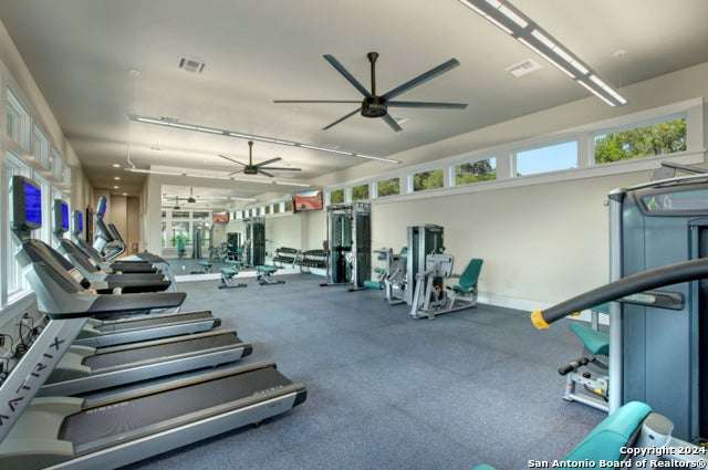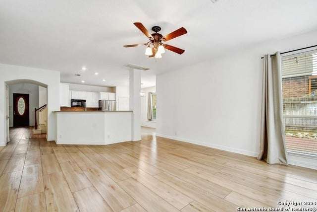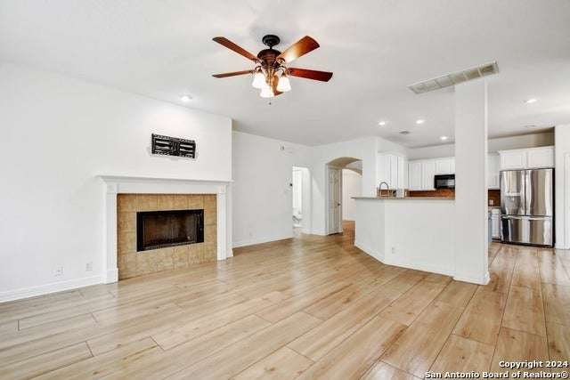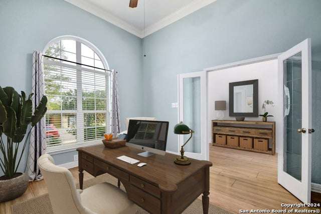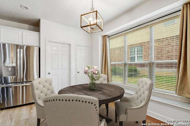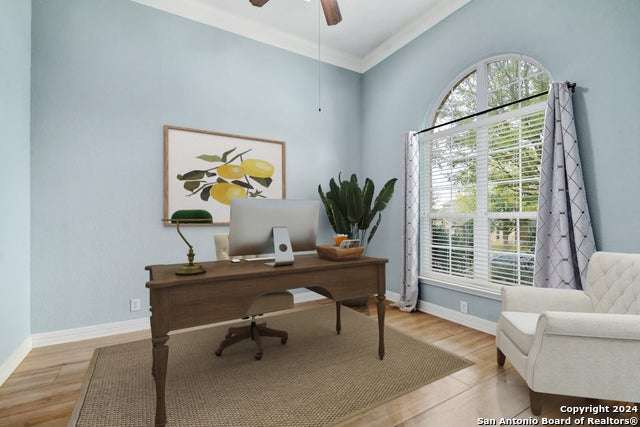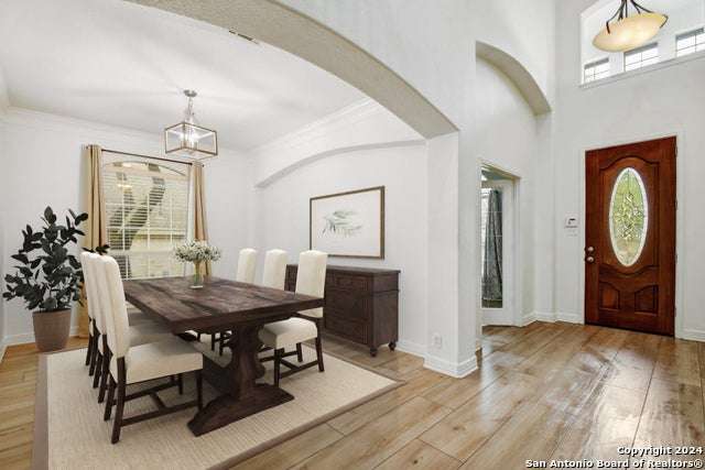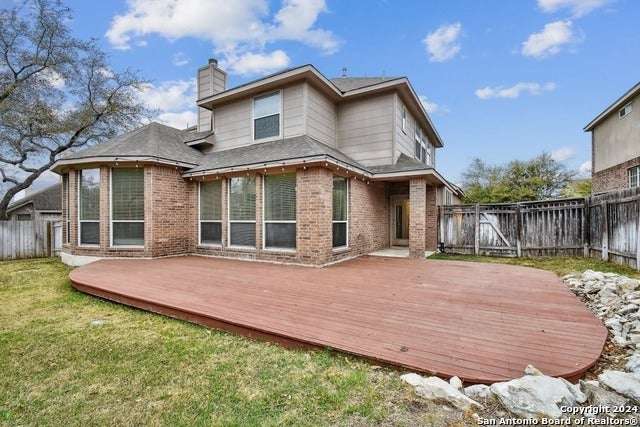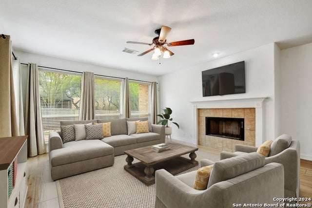 Welcome to this stunning Highland home in the prestigious Cibolo Canyons community! Perfectly situated just a 3-minute drive from US Hwy 281 and the Village at Stoneoak Shopping Center-featuring Target, DSW, Hobby Lobby, and a variety of eateries-this property offers both convenience and luxury. Sam's Club is just 1.2 miles away, Johnson High School is within a mile, and you're only a 10-minute drive (4.7 miles) to 1604 & Bulverde Rd. This pristine 4-bedroom, 3.5-bathroom home, plus an office, in almost 3000 square feet. This lovely home is ideal for both relaxing and entertaining. The open floor plan welcomes you with white-oak wood-look tile floors and fresh paint, while the main-level master suite adds a touch of convenience. Step outside onto the large ground-level deck and imagine hosting gatherings or enjoying a quiet evening at home. The eat-in kitchen is a chef's dream, featuring ample storage with 42" cabinets, a spacious pantry, and three additional storage cabinets in the adjacent laundry room. The chef's kitchen also boasts a gas stove, a LG stainless steel fridge, and a cozy bench seat, perfect for casual dining. The primary retreat is down with spa bath and large walk in closet.Upstairs, you'll find a generous game room and three secondary bedrooms, each with walk-in closets-two of which have en suite bathrooms. The home also includes two A/C units and a 2-car garage with attic storage. Set up a private showing! With walking distance to Cibolo Canyon's amenities-such as a gym, lazy river, splash pad, and pool-this home is designed for both comfort and lifestyle. Don't miss out on the opportunity to make this exceptional property yours. Schedule a viewing today!