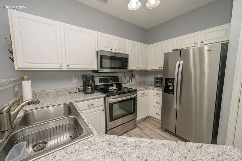 Move-In Ready, No-Step Condo with Modern Upgrades!Welcome home to this beautifully updated 2-bedroom, 2-full-bath condo featuring a versatile bonus roomperfect for a home office, den, or guest space. Designed for comfort and convenience, this no-step floor plan offers seamless living with newer luxury vinyl plank flooring and a spacious, open layout.The upgraded kitchen boasts newer stainless steel appliances and plenty of cabinetryideal for everyday living or entertaining. The bright living room opens to a screened-in patio, creating the perfect spot to relax and enjoy the outdoors.Additional highlights include a 1-car garage, modern finishes throughout, and a prime location close to shopping, dining, and everyday amenities.Move right in and start living your best life!(Several photos have been virtually staged.)