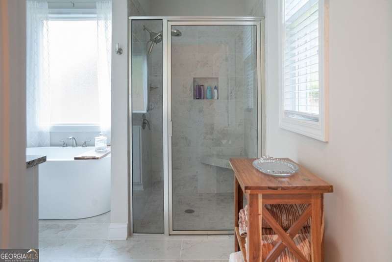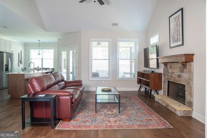 Welcome to this beautiful four bedroom, three bathroom home nestled in one of the highly desirable neighborhoods in Cartersville city district. Step inside to find an inviting, open layout featuring a spacious kitchen and living room area as well as a cozy fireplace. The home is designed with minimal steps to provide for ease of transition between rooms. The luxurious primary suite is complete with a soaking tub, stepless shower, and double vanity. Enjoy year-round outdoor living on the covered screened-in back porch overlooking a wooded backyard that offers peace and natural beauty. An additional approximately 300 square feet of attic space is easily accessible and could be used as storage or easily converted into extra living space. Neighborhood amenities add to the appeal, providing the perfect blend of comfort, community, and convenience.