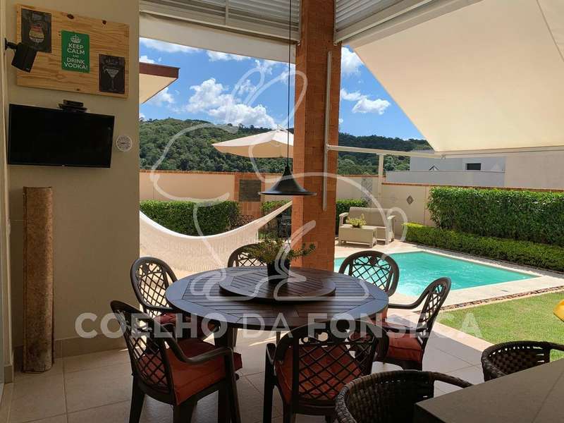 Excelente casa, moderna, ar condicionado em todos os cômodos, 4 suites, home theater, escritório, área gourmet integrada com a piscina e linda vista. Lounge no jardim com lareira, fechaduras eletrônicas, captação de água da chuva, sótão com escada retrátil de acesso fácil 100% utilizável. Opção de venda mobiliada.