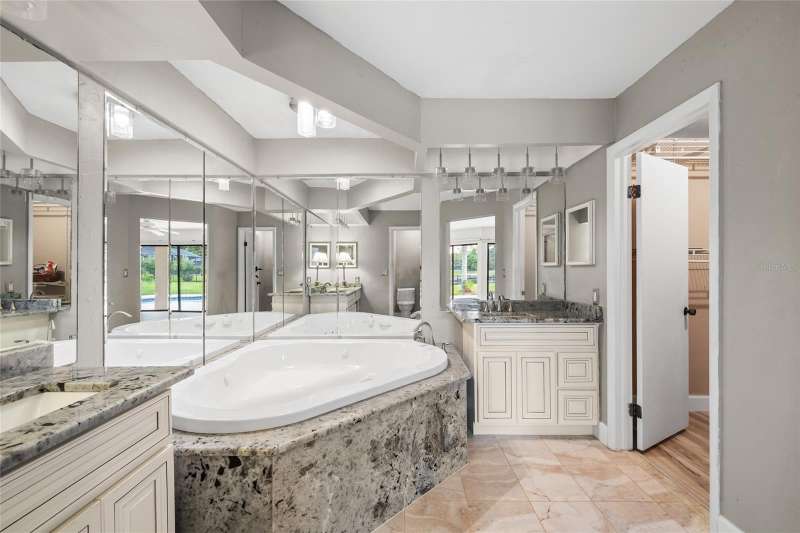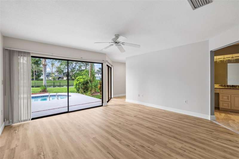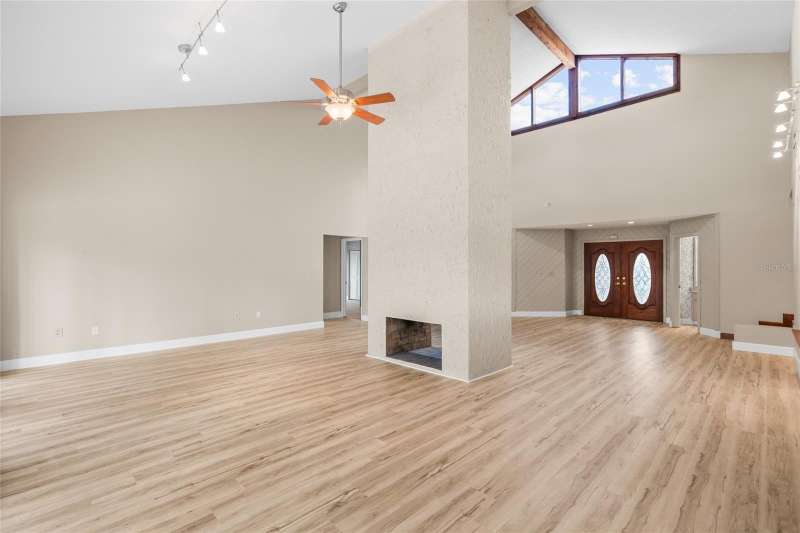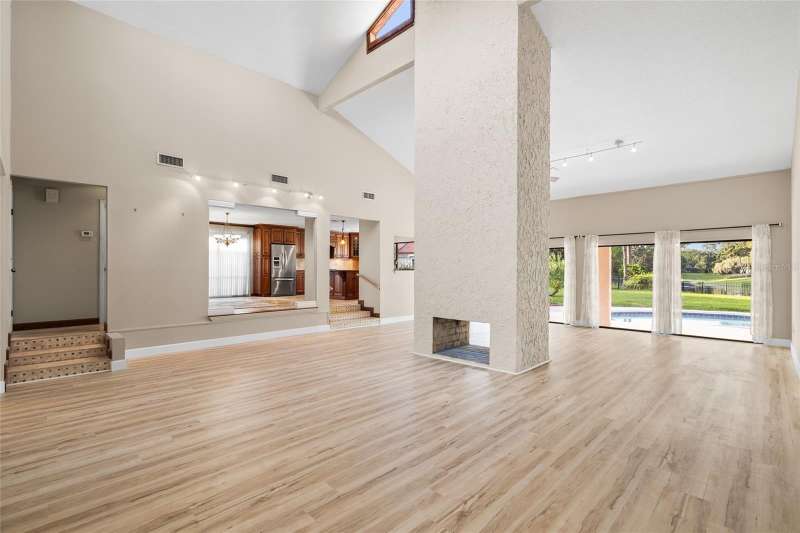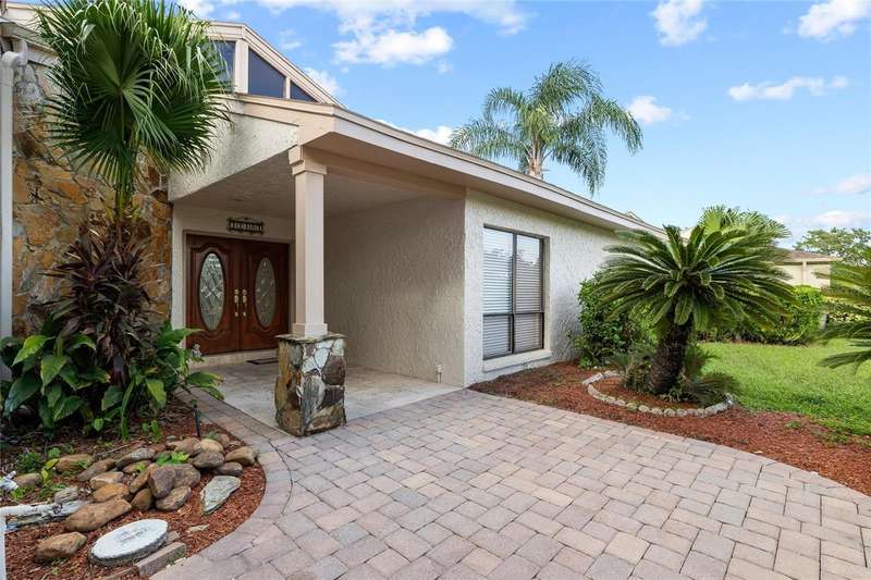 Impressive Carrollwood Village home in a beautiful a neighborhood with a POND VIEW! BRAND NEW ROOF 2025,EXTERIOR PAINT ,NEW FLOORING, BASEBOARDS,POOL SKIMMER ,LEAF FILTERS-- All in 2025.As you enter this home you are greeted with soaring cathedral ceilings, double sided fireplace and direct pond views. Contemporary floor plan with very spacious living areas. 4 bedroom, 3.5 baths, 2 car garage and pool. The Kitchen is a chefs delight with a huge center Island, Dual fuel oven (propane cook top and electric oven, POT FILLER!!. Plus enjoy amazing views from your Kitchen window. 2-way split bedroom plan with the primary suite tucked away in the back with Ensuite and huge walk-in closet. Enjoy the alcove in the Primary for reading or relaxing which has another closet.The second bedroom -2nd Primary has an ensuite. The 3rd and 4th bedrooms have a Walk-in closet and a Jack and Jill bathroom. All bedrooms are quite large-note room sizes. The Location is perfect close to shops, grocery, Pharmacy, hospitals, restaurants -you name it. 20 min or less to Tampa International and downtown Tampa. Enjoy the amenities Carrollwood Village -Tennis and pickleball courts, Playgrounds, skate park, dog park, waterpark etc. Carrollwood Country Club is just around the corner with 27 holes-it is private and requires membership which can be social, tennis or golf which includes a fitness center and heated pool.