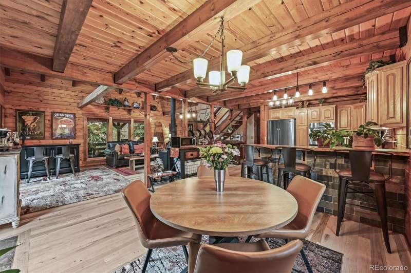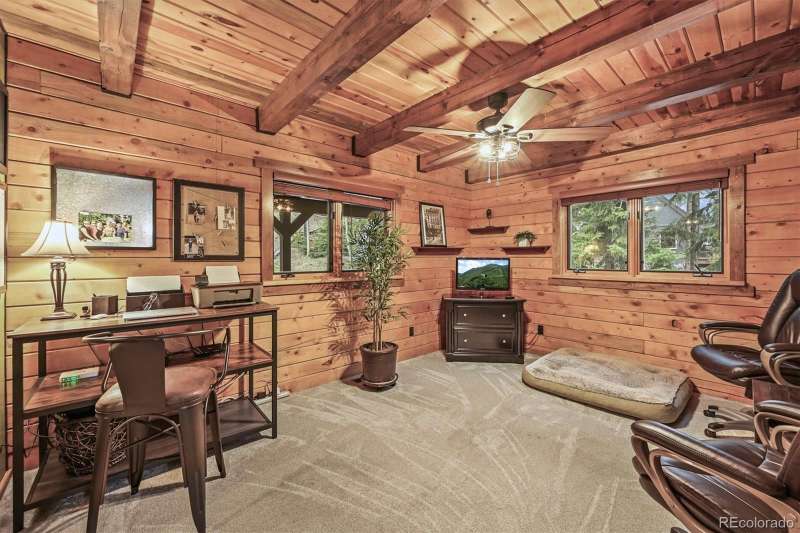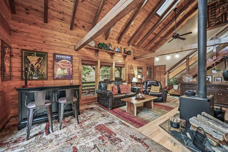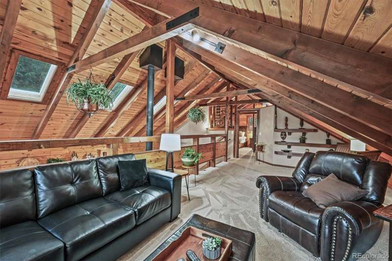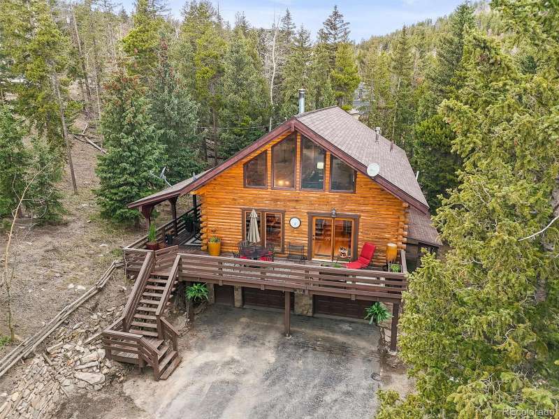 Tucked away on a quiet, tree-lined acre in the heart of the mountains, this charming log home is more than a house-it's a mountain experience. A peaceful retreat where the rustling of leaves and calls of songbirds replace the sounds of the city, and is designed to offer warmth, comfort, and a connection with nature. A paved driveway winds through tall pines, leading you to a home with rustic, timeless charm. Step onto the covered porch or relax on the expansive wrap-around deck, where morning coffee and starlit evenings become daily rituals. The property is a haven for your four-legged companions, with a dog run and an invisible dog fence. Inside, you're welcomed by vaulted ceilings, large picture windows, and skylights that fill the home with golden light. Newer wide-plank hickory floors add warmth and character, while a wood stove enhances a mountain-cozy feel. This is a place where fires crackle, laughter echoes, and life slows down just enough to let you breathe. The heart of the home-the spacious kitchen-invites conversation and creativity with stainless steel appliances and granite countertops. A charming loft overlooks the living area, offering a quiet spot for reading, working, or simply watching the snowfall. The primary suite is a peaceful escape, with a walk-in closet and a bathroom featuring a custom free-standing tub-perfect for unwinding after a day of adventure. The finished basement adds flexible space for guests, hobbies, or a media room. Additional highlights include a newer furnace, large-capacity propane tank, and an oversized 2-car garage for year-round comfort and practicality. Whether you're curled up by the fire, hosting loved ones in the open living space, or breathing in the crisp mountain air, this home surrounds you like a warm embrace. Come experience the peace you didn't know you were missing. This one-of-a-kind mountain hideaway is ready to welcome you home.