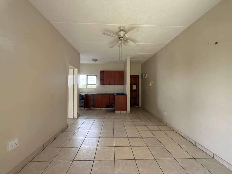 Ground floor, 1 Bedroom Apartment! Located on the very popular Soetdoringpark in Doringkruin. Open plan living space with kitchen, kitchen cabinetry in a cherry wood finish. Bedroom with ensuite bathroom is at the side of living space. Covered parking, with ample open quest parking. Gate is monitored by 24-hour guards, complex is fully walled with electrical fencing at the top.