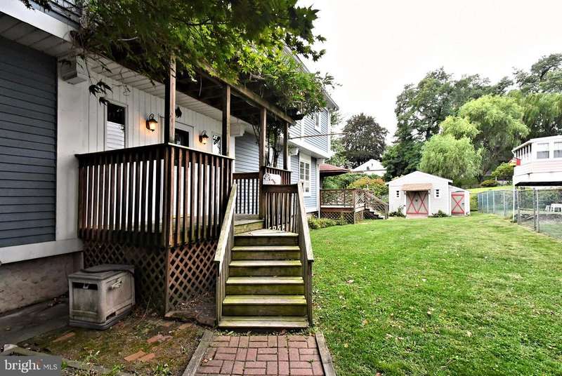Rare opportunity to own one of only six waterfront properties in Morrisville Borough! This beautifully maintained custom-built Colonial offers 3 bedrooms, 1.5 bathrooms, and timeless charm with thoughtful upgrades throughout, including new carpets and fresh paint. Step inside to a welcoming foyer with woven bamboo flooring, complemented by solid oak trim that flows through the home. The spacious living room features oak flooring with inlaid tile detailing, creating a warm and unique character. The remodeled main bathroom showcases classic subway tile and a walk-in shower, blending style and function. Major updates ensure peace of mind, including a roof (2017), HVAC (2019), Andersen windows and sliding door, and hot water heater (2023). Out back, enjoy the serene setting from your large deck overlooking the fenced yard and built in canopy. A large shed, carport, and off-street parking provide convenience and storage rarely found in the borough. With its waterfront location, quality craftsmanship, and modern updates, this home is a standout find in Morrisville.